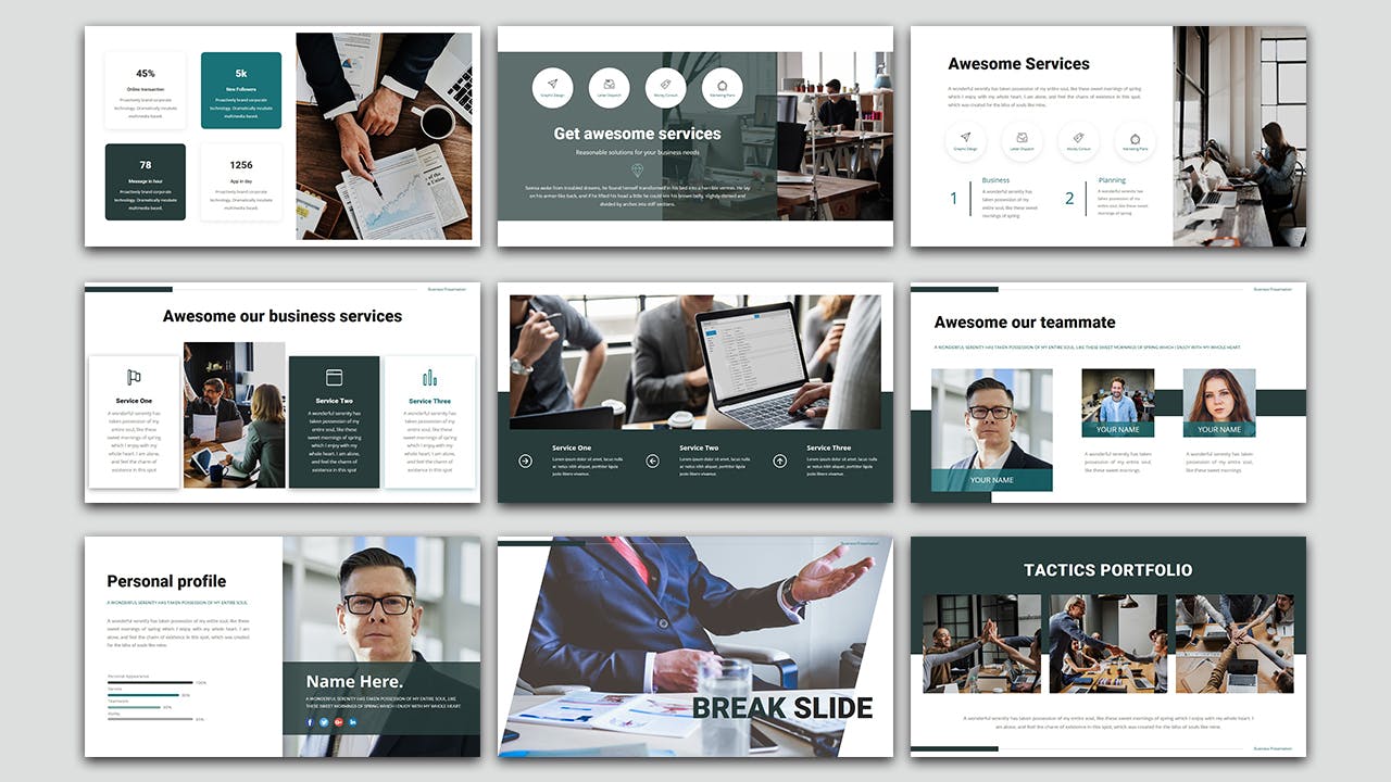 此演示模板可用于各种目的,例如:创意机构、公司简介、公司和业务、投资组合、摄影、宣传材料、启动,也可用于个人投资组合。