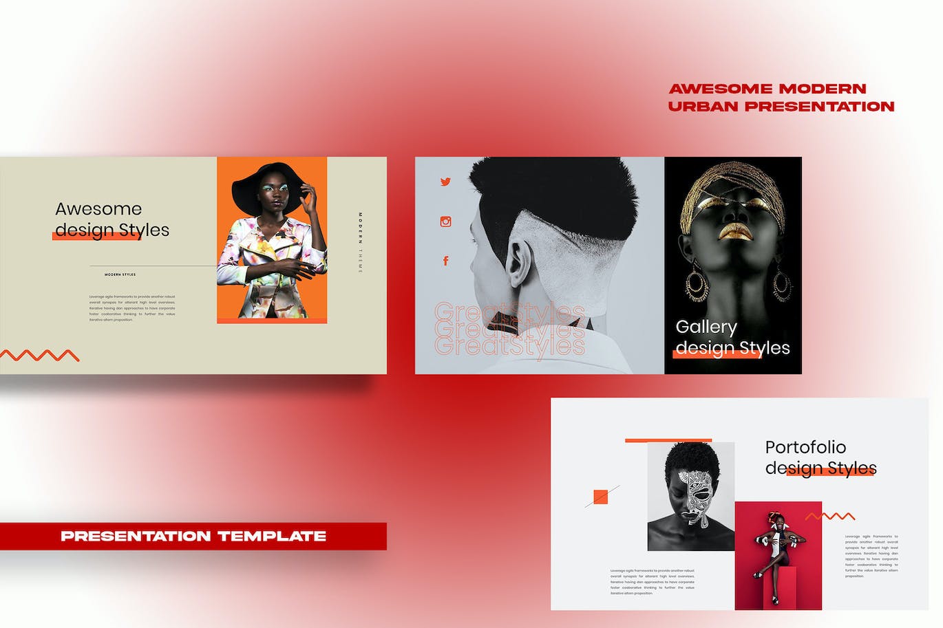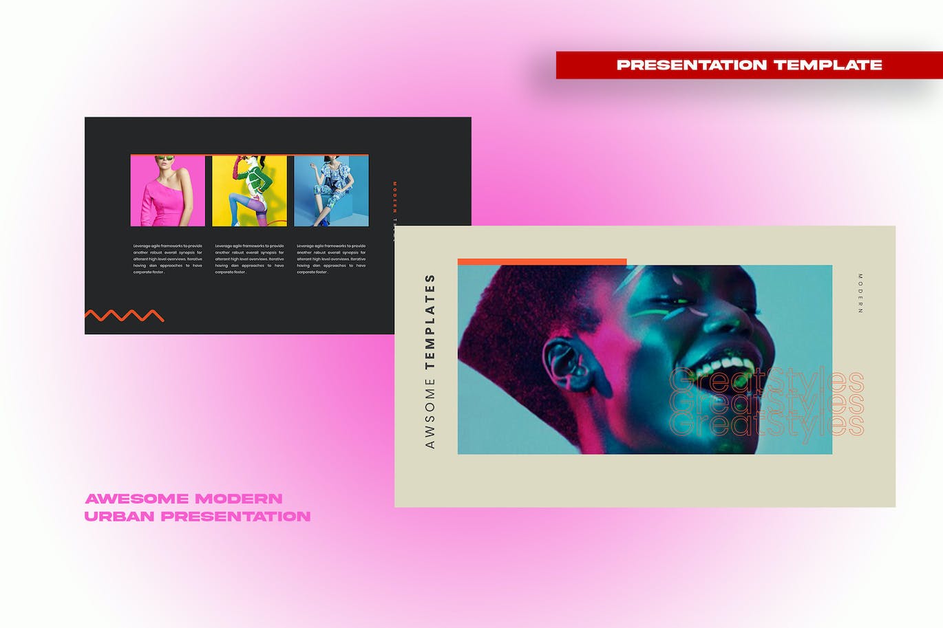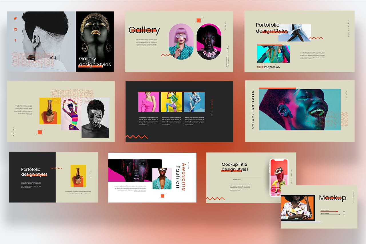 带有 Slidemaster 的现代创意风格演示文稿、极简主义和灵活的演示文稿模板。非常适合时尚、都市、公司展示和个人使用。很容易改变配色方案。使用 Slidemaster 和设备模型完成完整的演示。