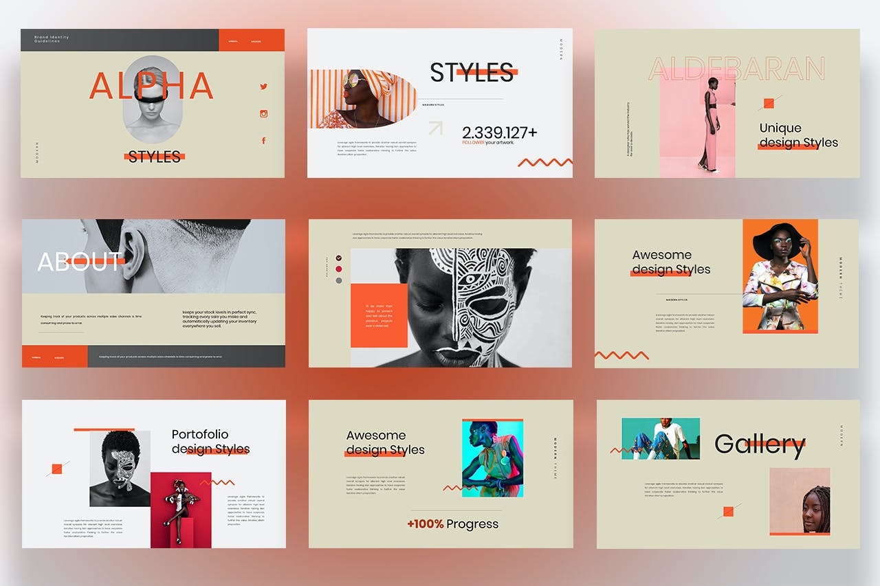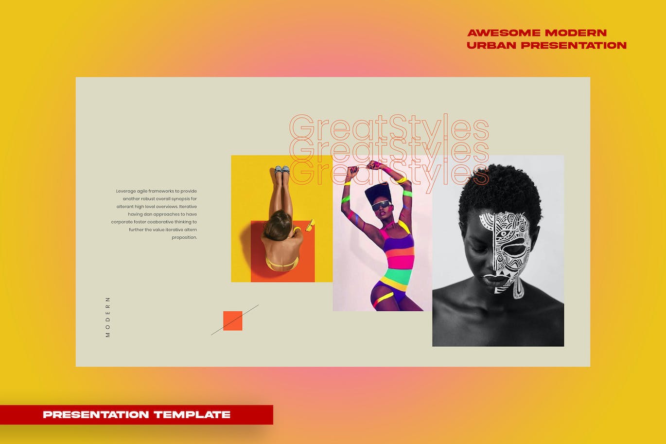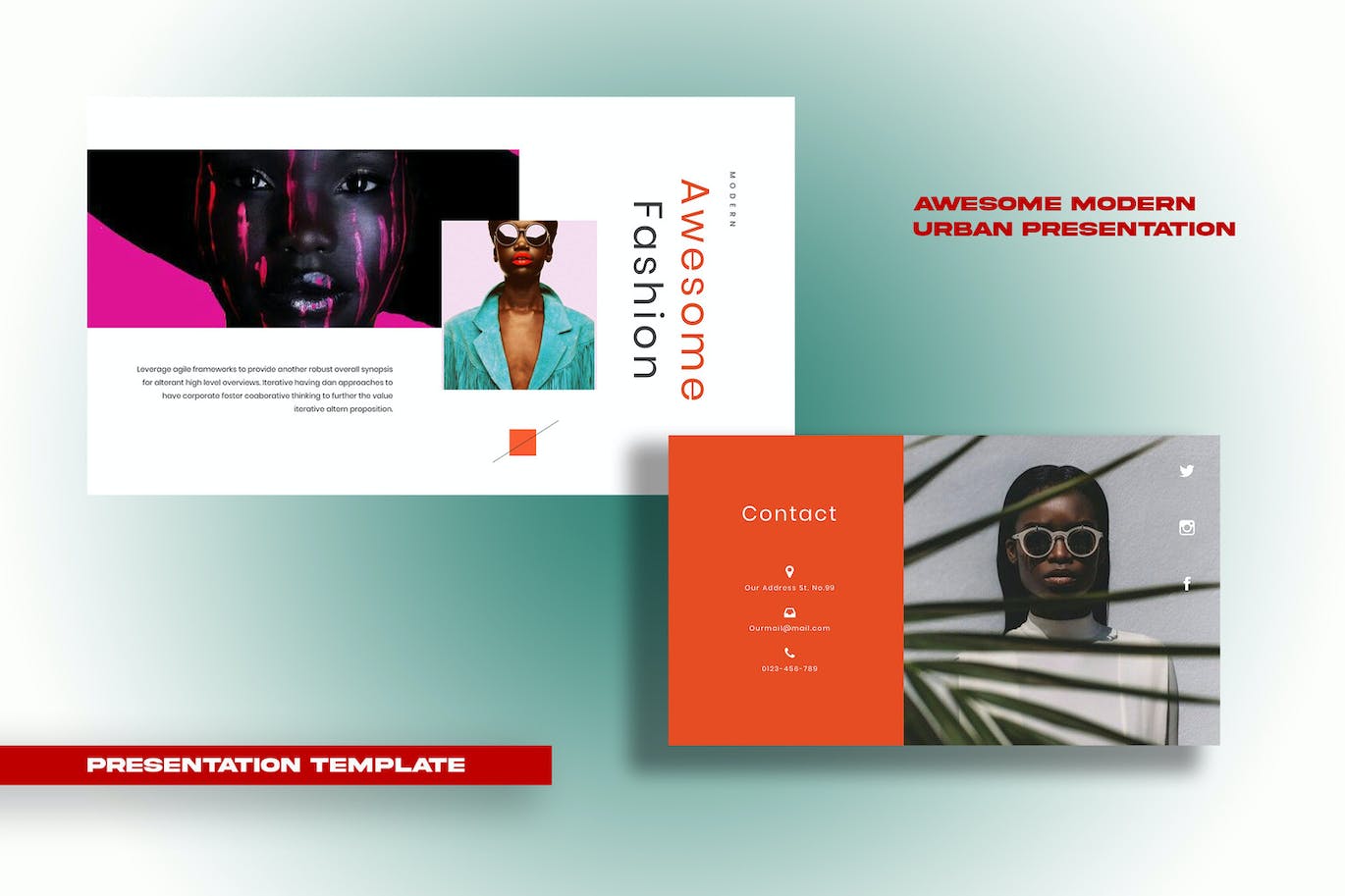 带有 Slidemaster 的现代创意风格演示文稿、极简主义和灵活的演示文稿模板。非常适合时尚、都市、公司展示和个人使用。很容易改变配色方案。使用 Slidemaster 和设备模型完成完整的演示。