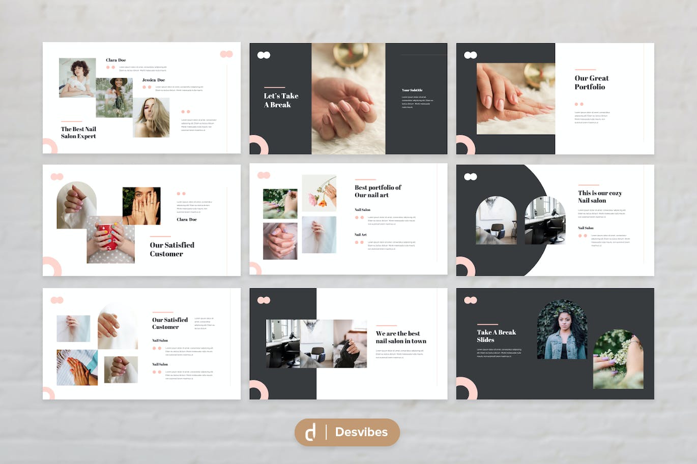 适用于所有美容护理业务的演示模板,主要焦点是美甲沙龙,此模板适合需要干净、简约和创意风格的演示模板。所有幻灯片的设计都注重细节。所有元素都易于编辑,您可以轻松更改颜色以使其与您的个人或公司品牌相匹配。