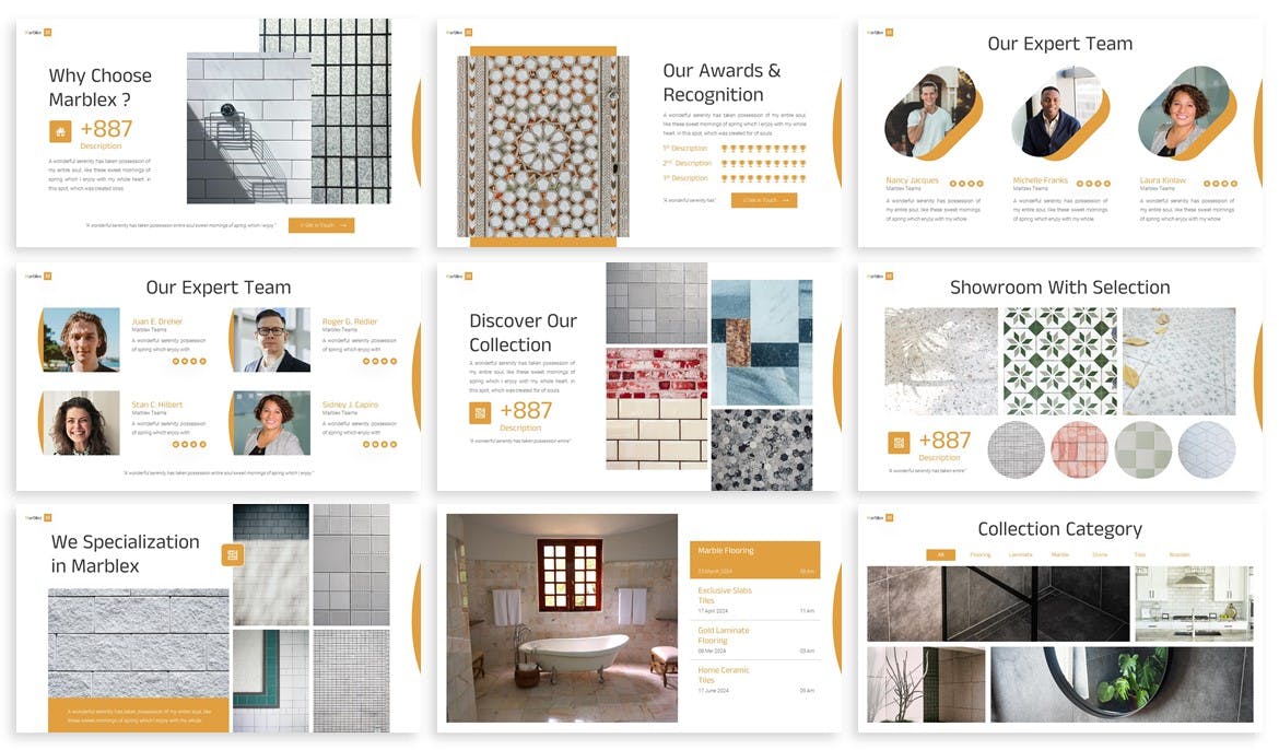 我们使用瓷砖和大理石主题作为预览,您可以轻松自定义它以满足您的需求和偏好。无论您是为公司简介、酒店、业务规划还是任何其他目的创建演示文稿,此模板都将帮助您传达具有影响力的信息。模板的所有元素都是完全可编辑的,从形状到颜色。此外,您无需任何其他软件即可使用 Powerpoint 进行编辑。使用此模板,您将能够轻松创建引人注目且有效的演示文稿。