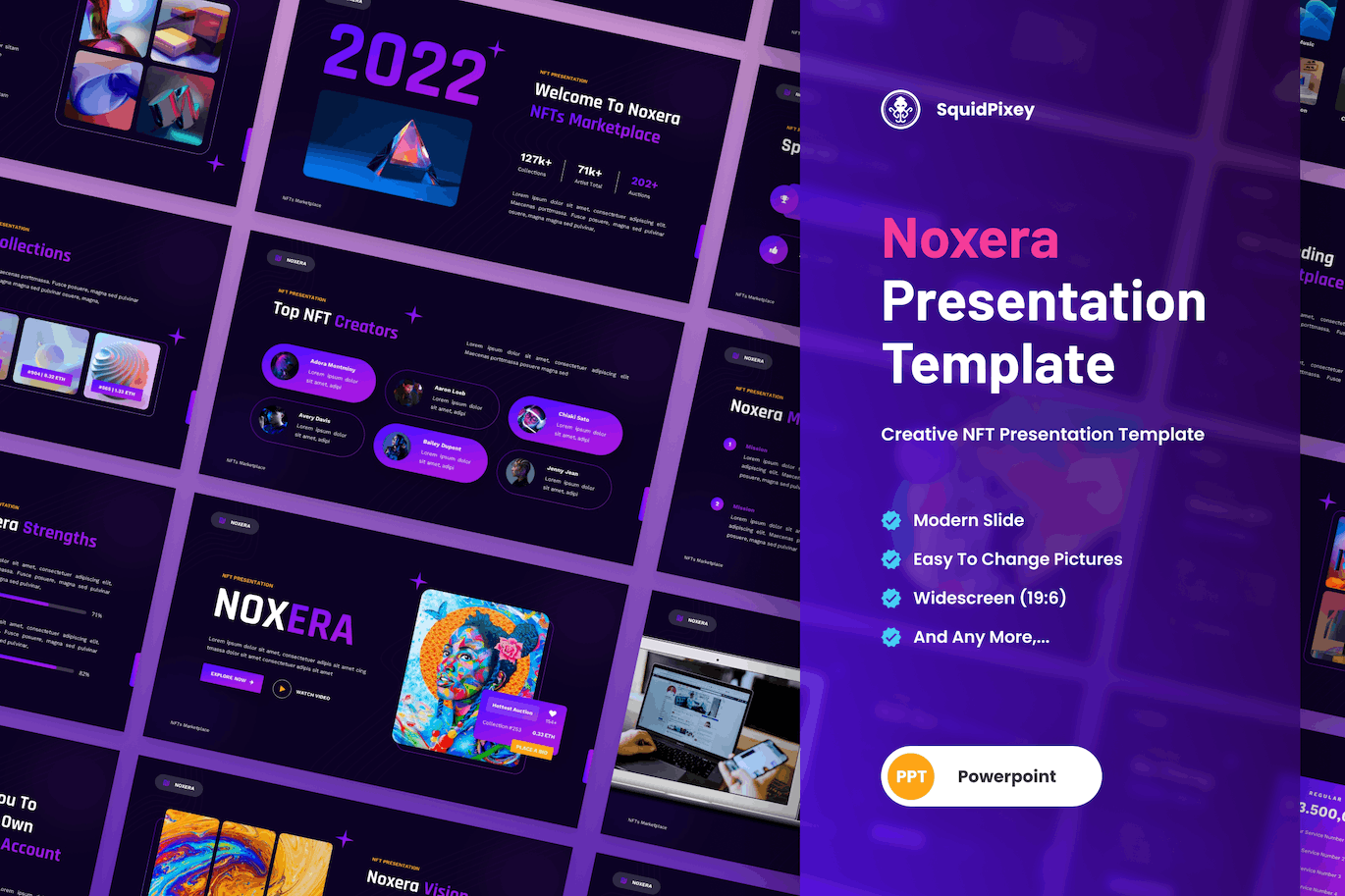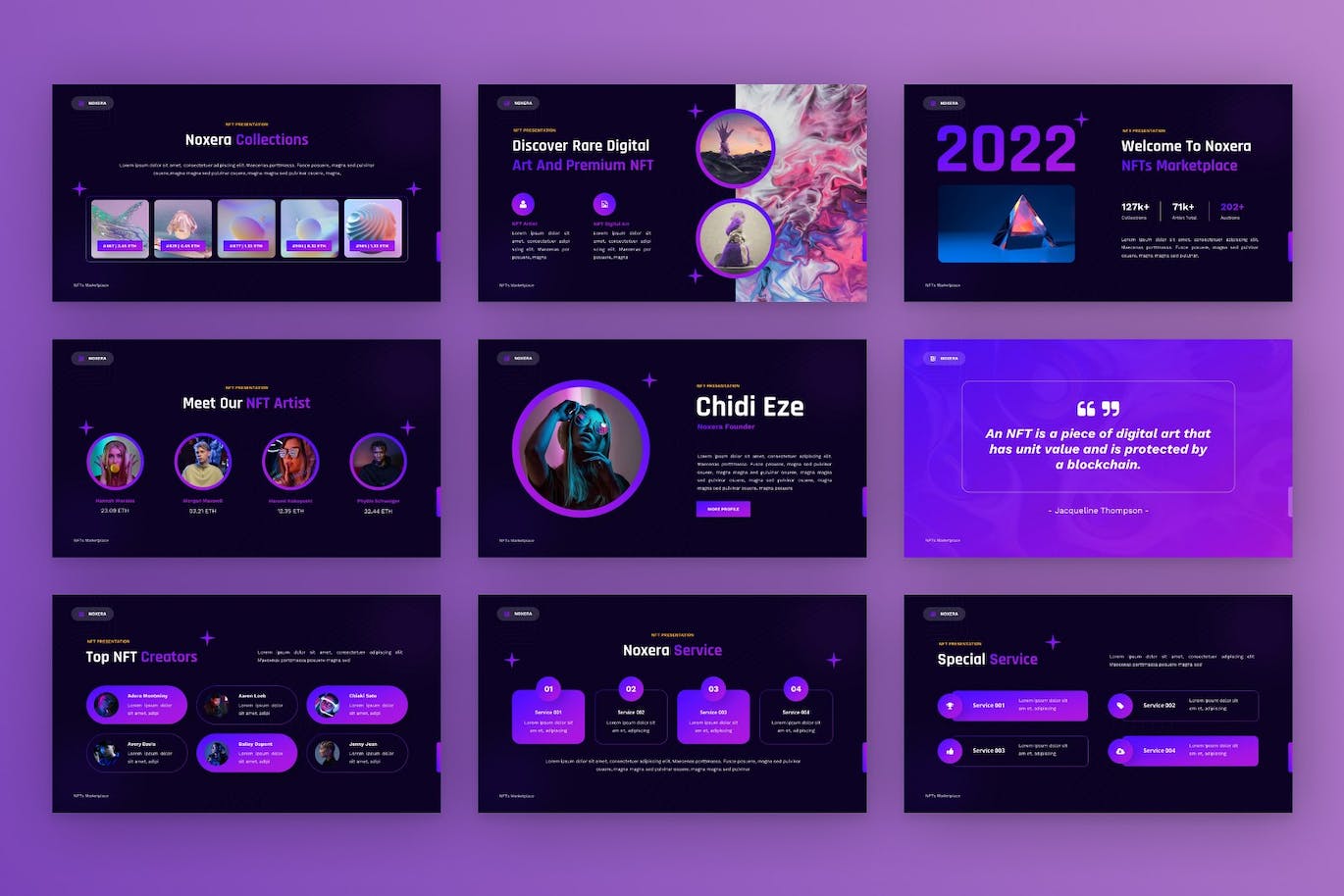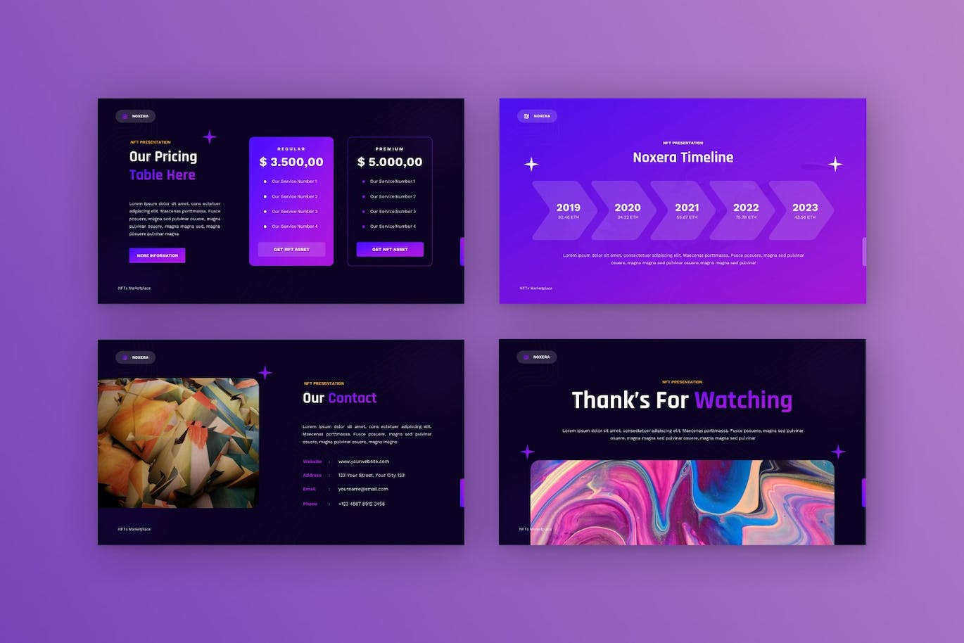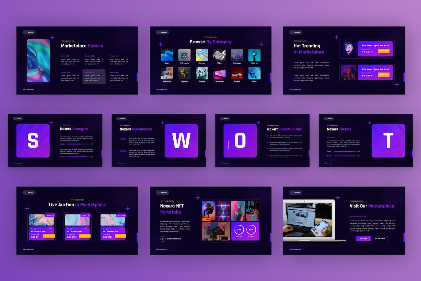 此演示模板适用于任何需要的目的,例如:NFT,市场,NFT 市场,电子竞技游戏,创意机构,公司简介,公司,业务,机构,初创公司,数字机构,项目,行业,技术,投资组合,广告,品牌,也可用于定制生产,非常容易编辑等等。此演示模板具有专业、现代、优雅、创意和独特的布局。