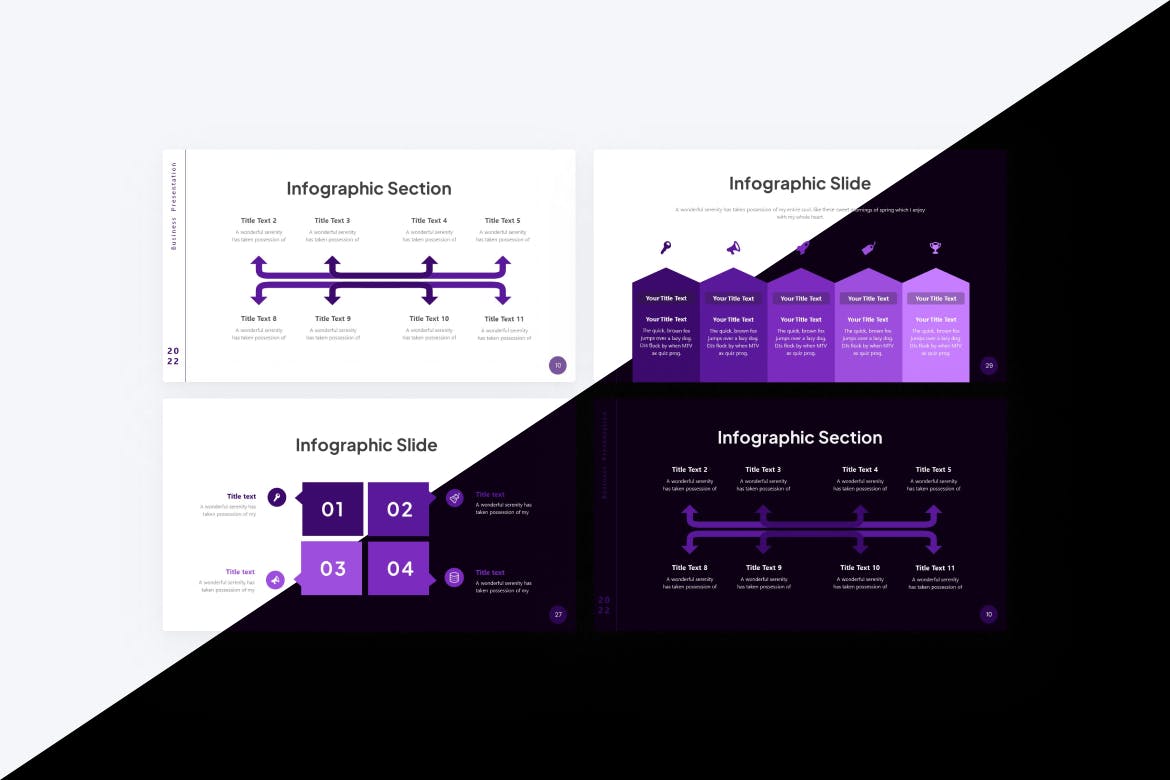 现在我们可以轻松找到许多令人惊叹的演示文稿模板。因此,我们需要转变思维方式,不仅要展示完美的幻灯片,还要提升其中的体验。在这里,我们向您展示信息图包,用于伴随您业务发展的每个阶段和整体品牌接触点,从开始一个新项目,在竞争对手中建立认可度,到以改进的目标主张结束它。