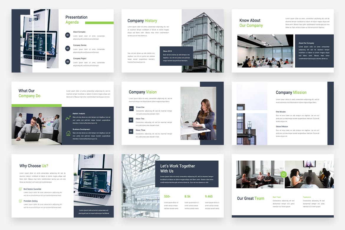 此 PowerPoint 模板可用于帮助展示创意业务,如初创公司、时装公司、创意工作室、创意机构等。