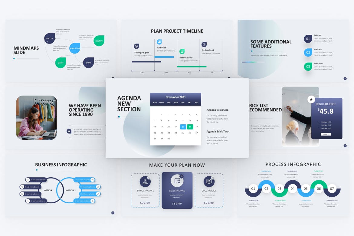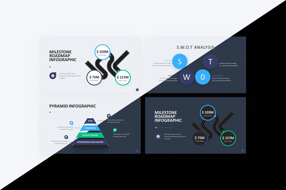 我们现在可以轻松找到许多令人惊叹的演示文稿模板。因此,我们需要转变思维方式,不仅要展示完美的幻灯片,还要提升其中的体验。在这里,我们向您展示信息图包,用于伴随您业务发展的每个阶段和整体品牌接触点,从开始一个新项目,在竞争对手中建立认可度,到以改进的目标主张结束它。