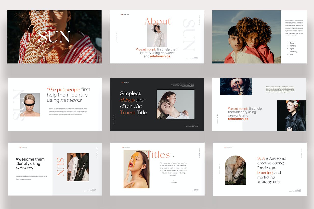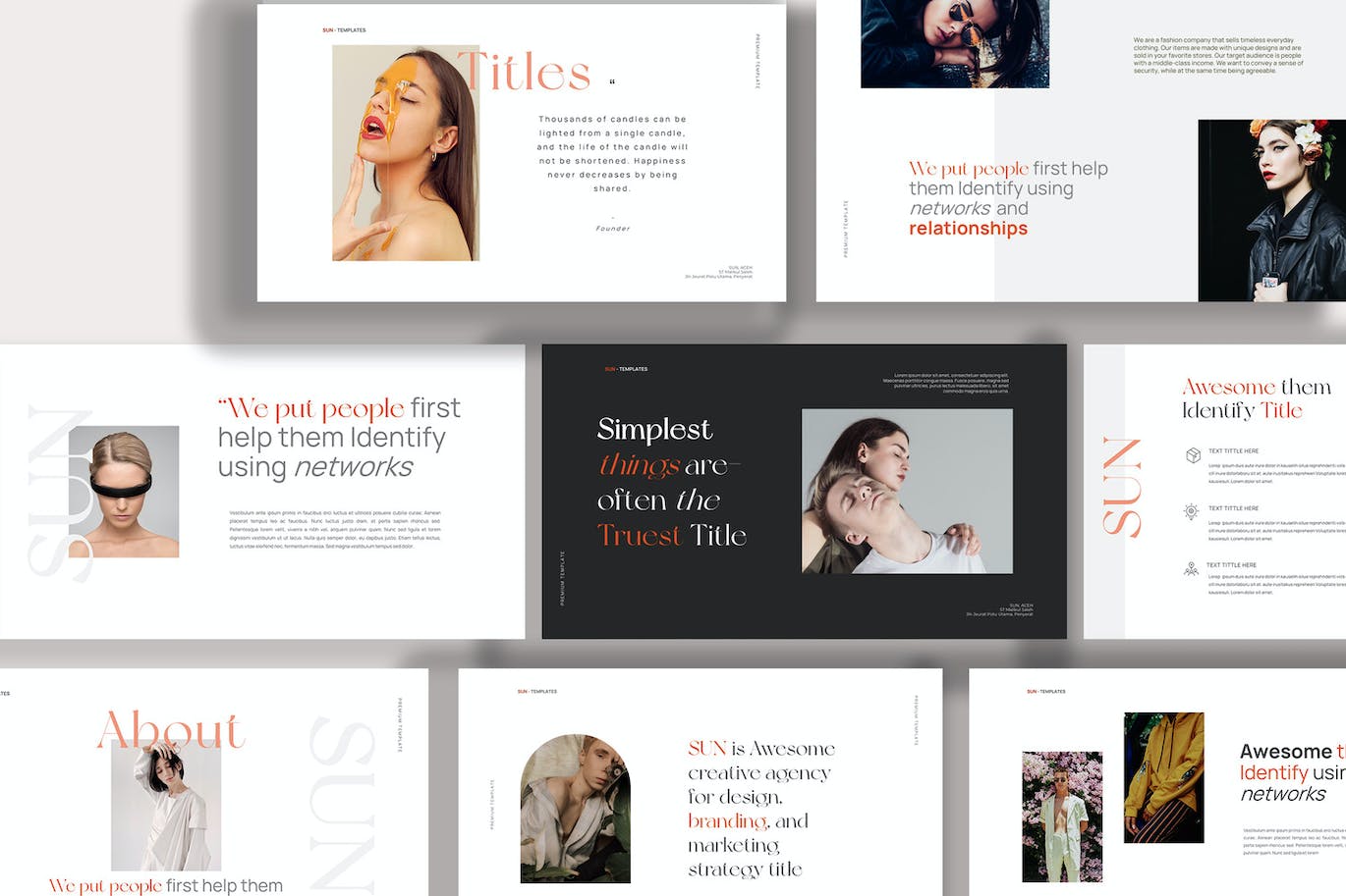 带有 Slidemaster 的现代 Lookbook 样式演示文稿、极简主义和灵活的演示文稿模板。非常适合时尚、都市、公司展示和个人使用。很容易改变配色方案。使用 Slidemaster 和设备模型完成完整的演示。
