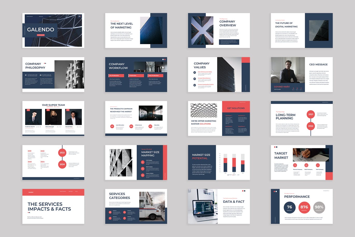 这个通用的演示模板非常适合许多不同的业务和个人演示,如:pitch deck、营销策略、产品组合、公司报告、公司简介、项目、个人作品集等等。