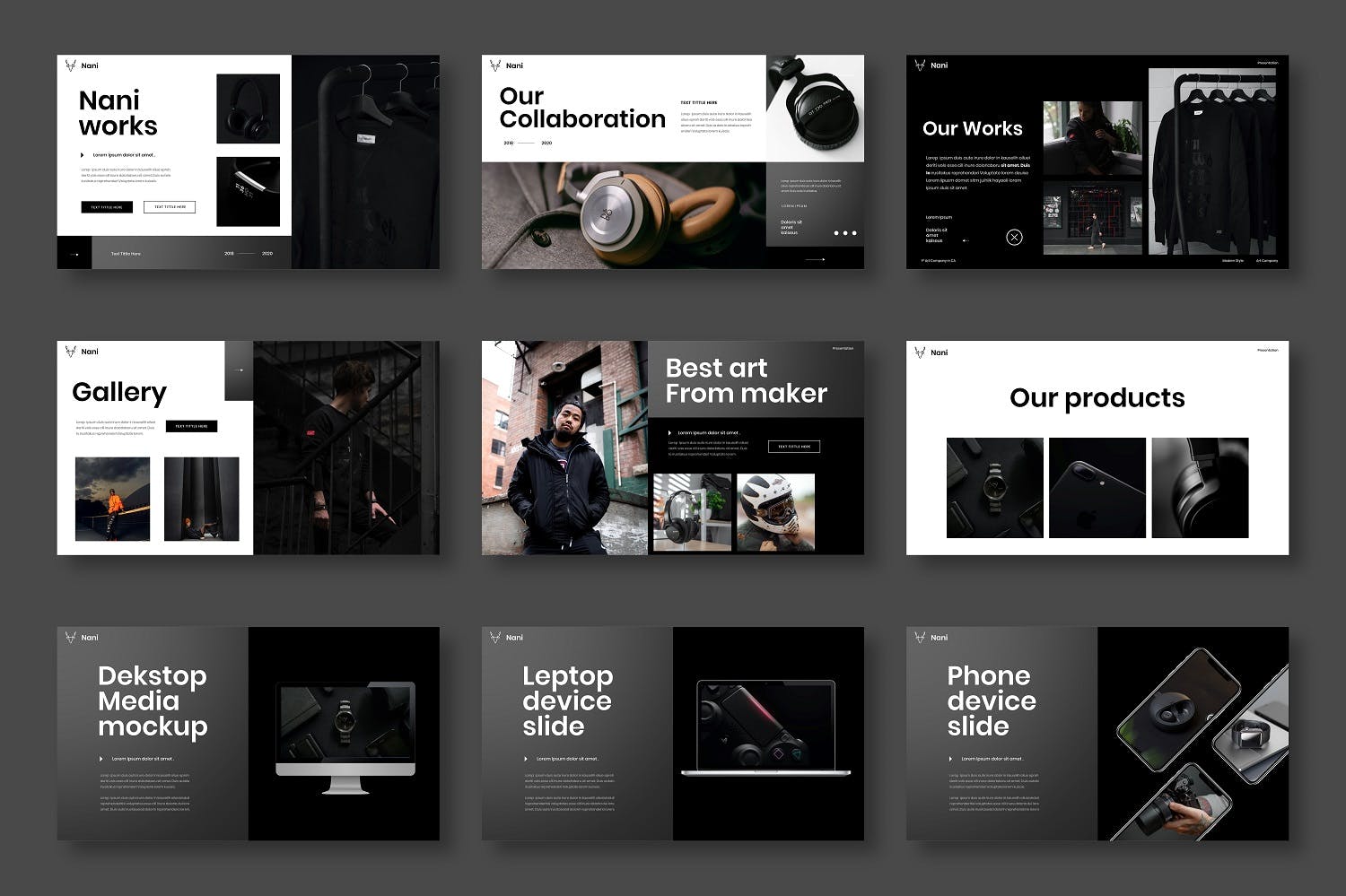 这个音乐主题演示模板可以用于任何目的,例如: 创意机构、公司简介、业务、摄影、Pitch Deck等等, 也可以用于个人作品集。