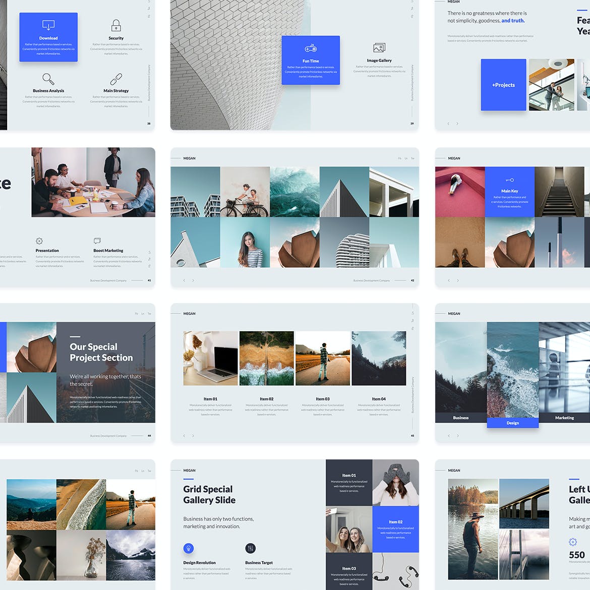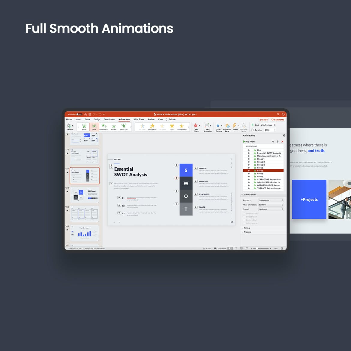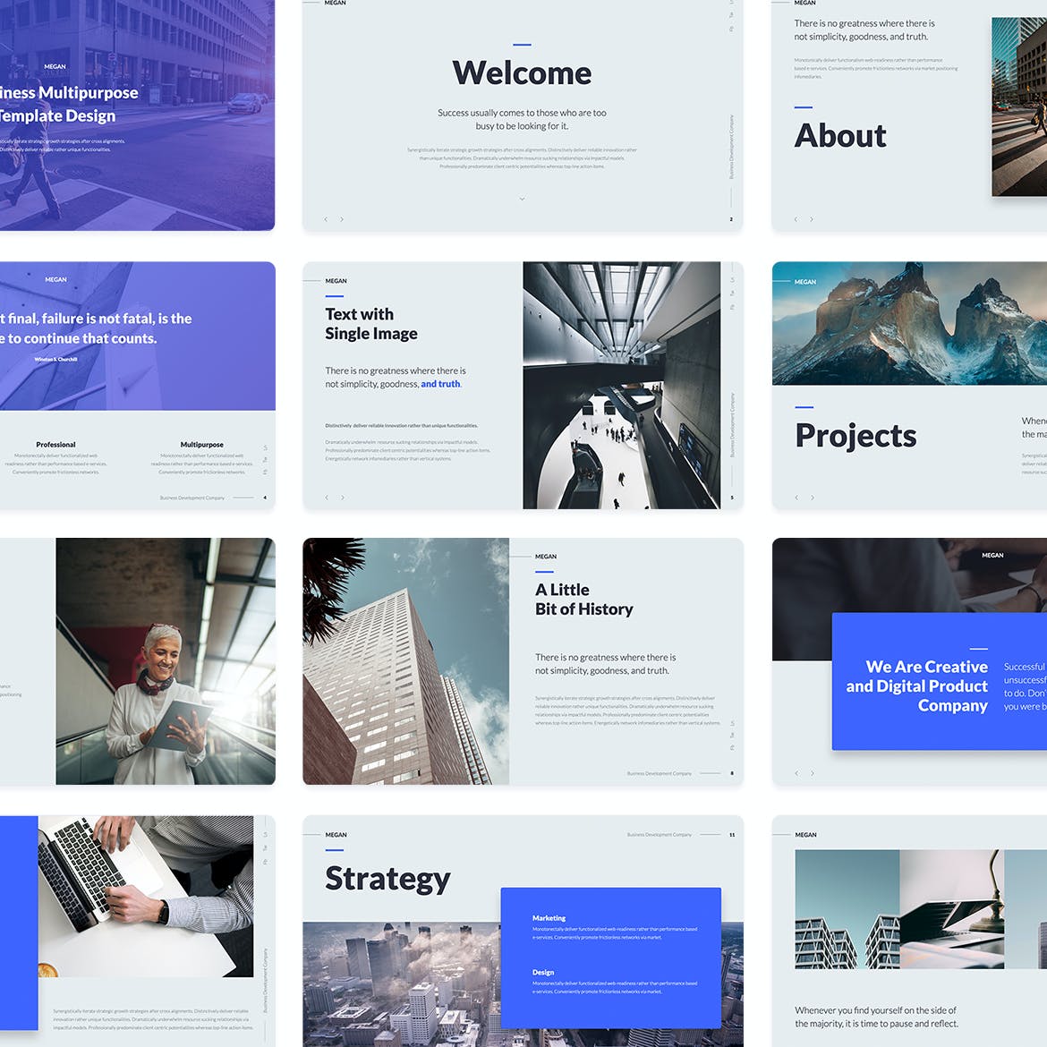 这是一个完整的动画和多用途演示模板。从一开始创建这个模板,就关注于所有幻灯片的实际使用、良好的可读性和有意义的建议。该模板的主要目的是将用户的想法与创造性、现代的设计和解决方案传递给他人。换句话说,模板是一个“产品”,买家直接使用它,并有机会表达他或她的想法。