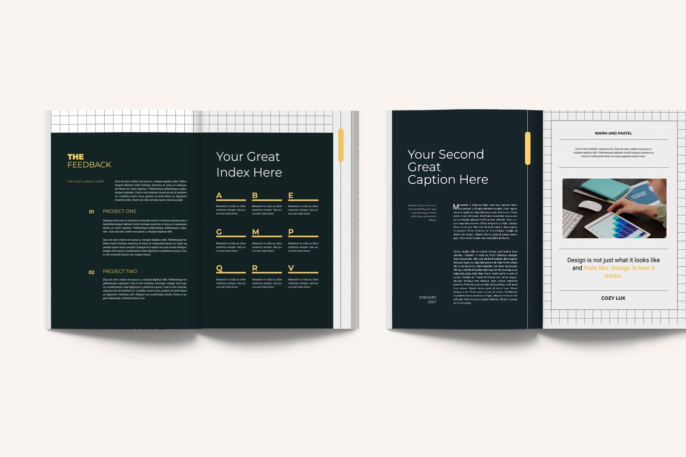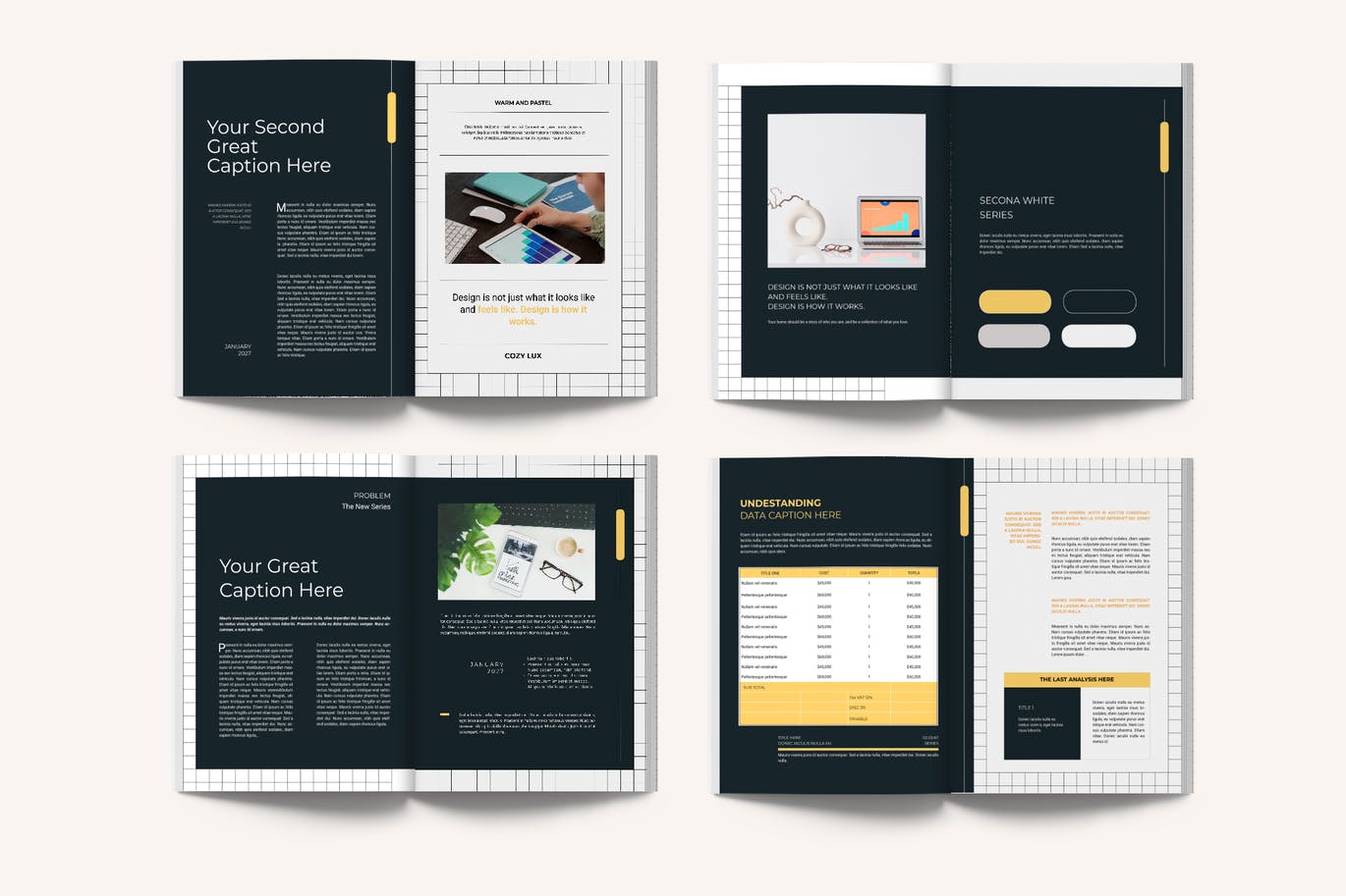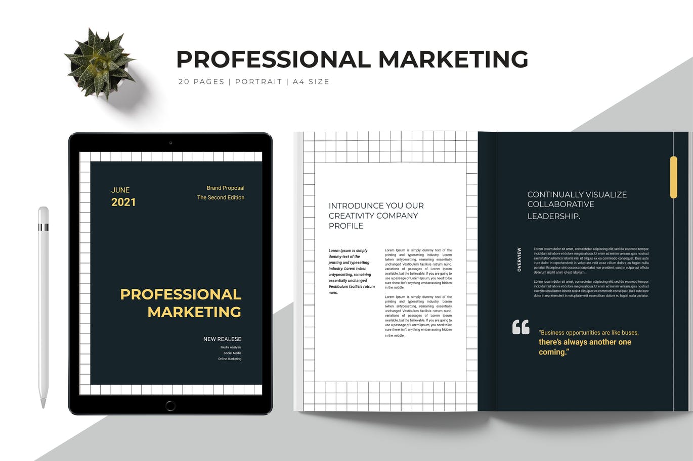这次老不湿分享的是,时尚专业的营销建议品牌手册画册宣传册杂志楼书设计模板,该模板有20个打印页面模板和可选的A4 Letter尺寸。适用于任何目的的完美选择,因此您可以从多种选择中找到适合您项目的完美选择。