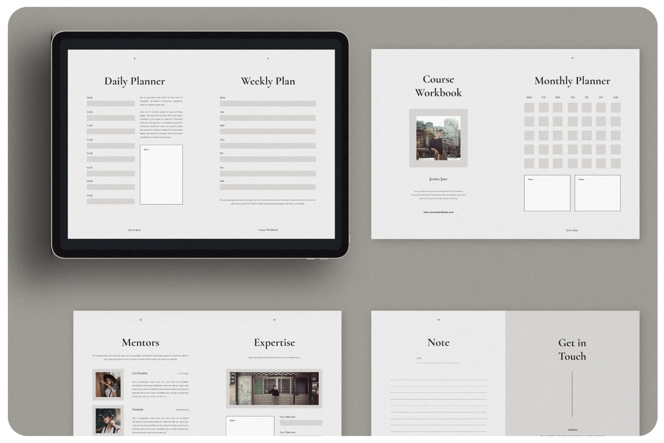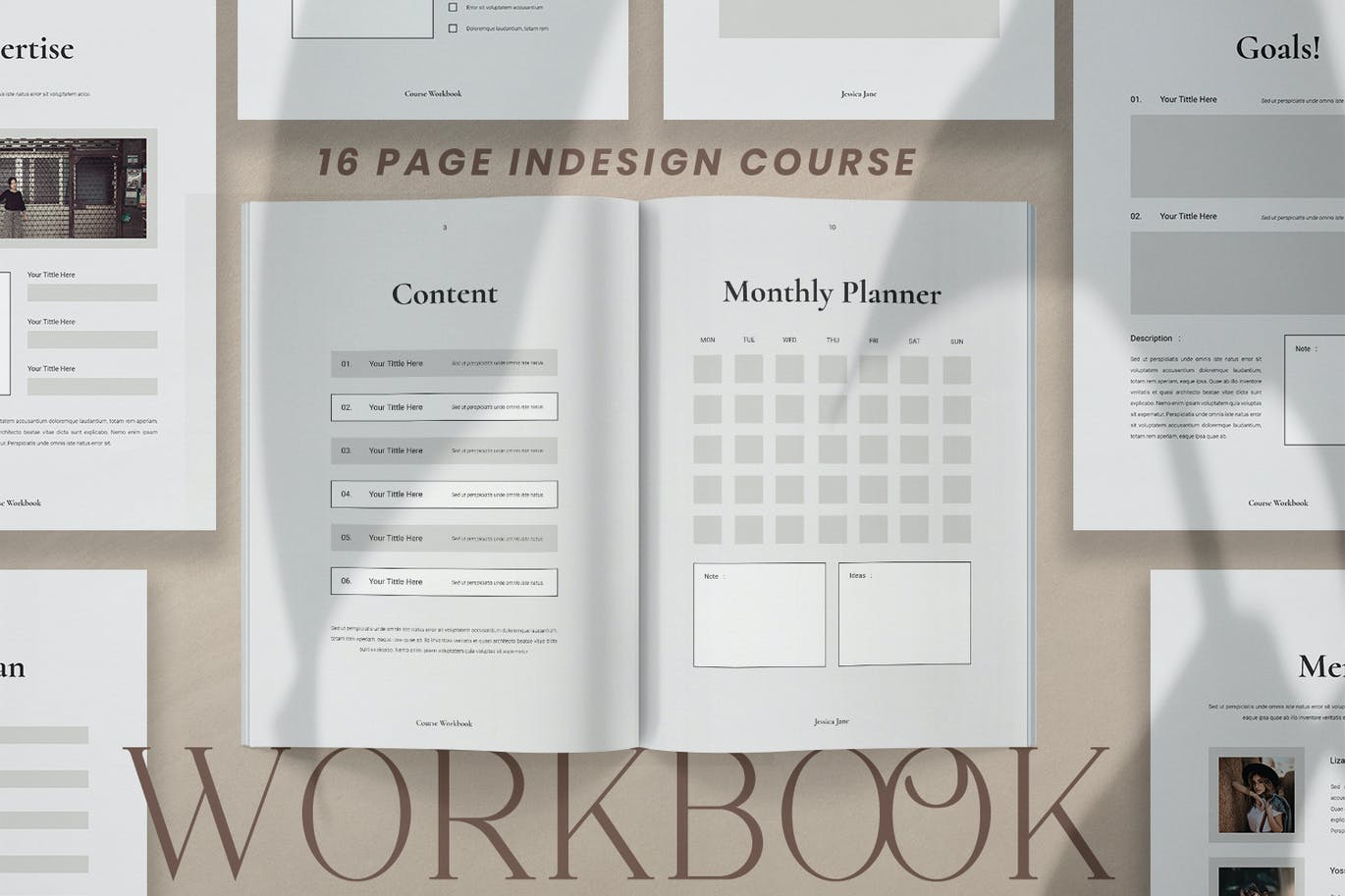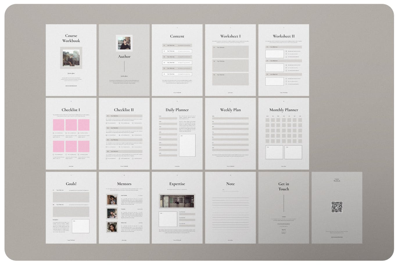 这次老不湿分享的是,时尚高端简约清新多用途的高品质课程工作簿品牌手册画册宣传册杂志房地产楼书设计模板-2,这是一本16页的工作簿 课程工作簿是一种由激情和爱心制成的最小设计风格的工作簿。