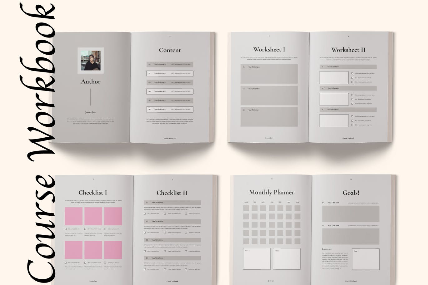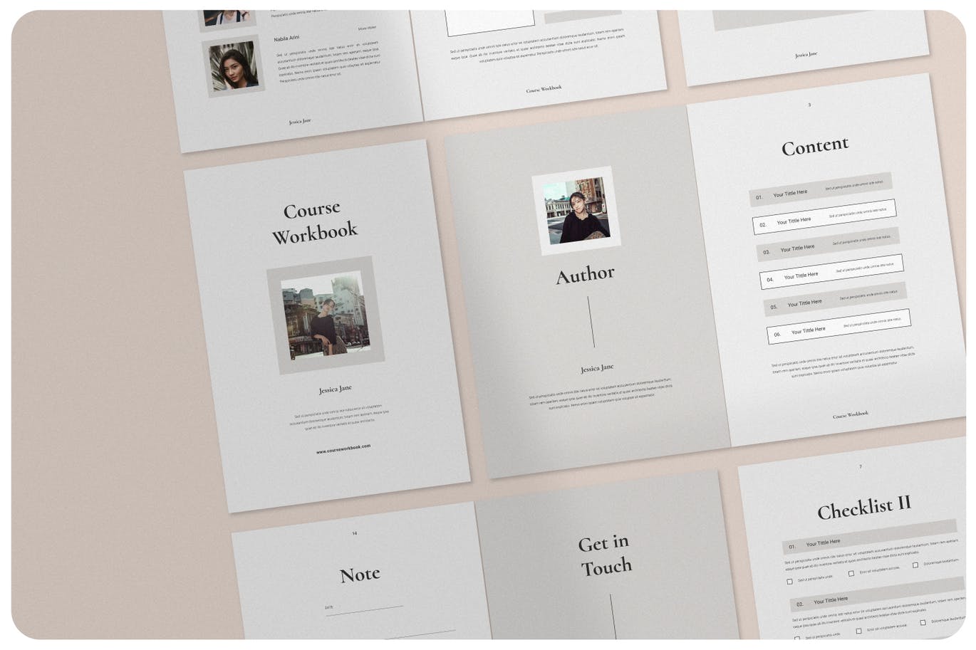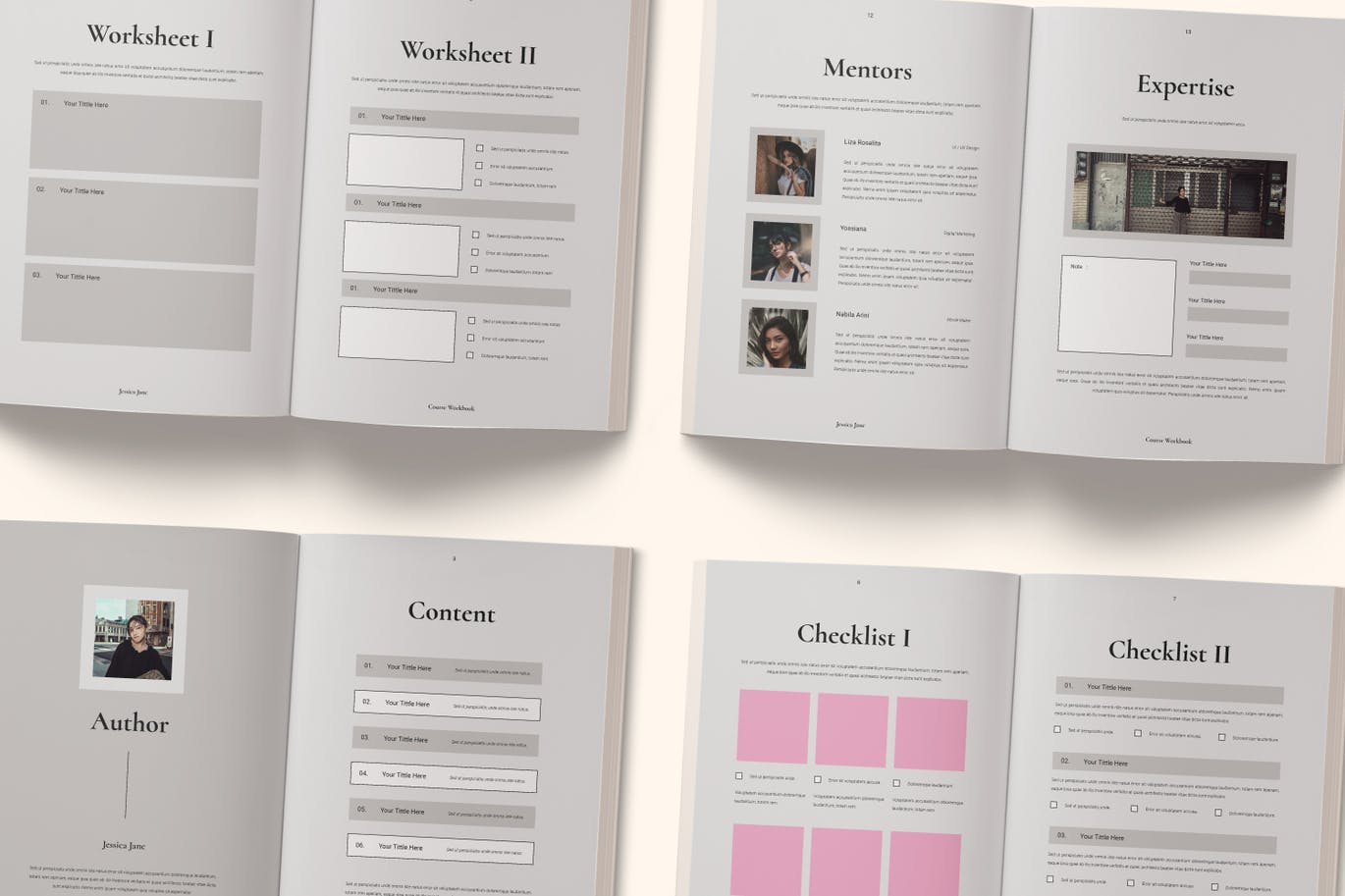 这次老不湿分享的是,时尚高端简约清新多用途的高品质课程工作簿品牌手册画册宣传册杂志房地产楼书设计模板-2,这是一本16页的工作簿 课程工作簿是一种由激情和爱心制成的最小设计风格的工作簿。