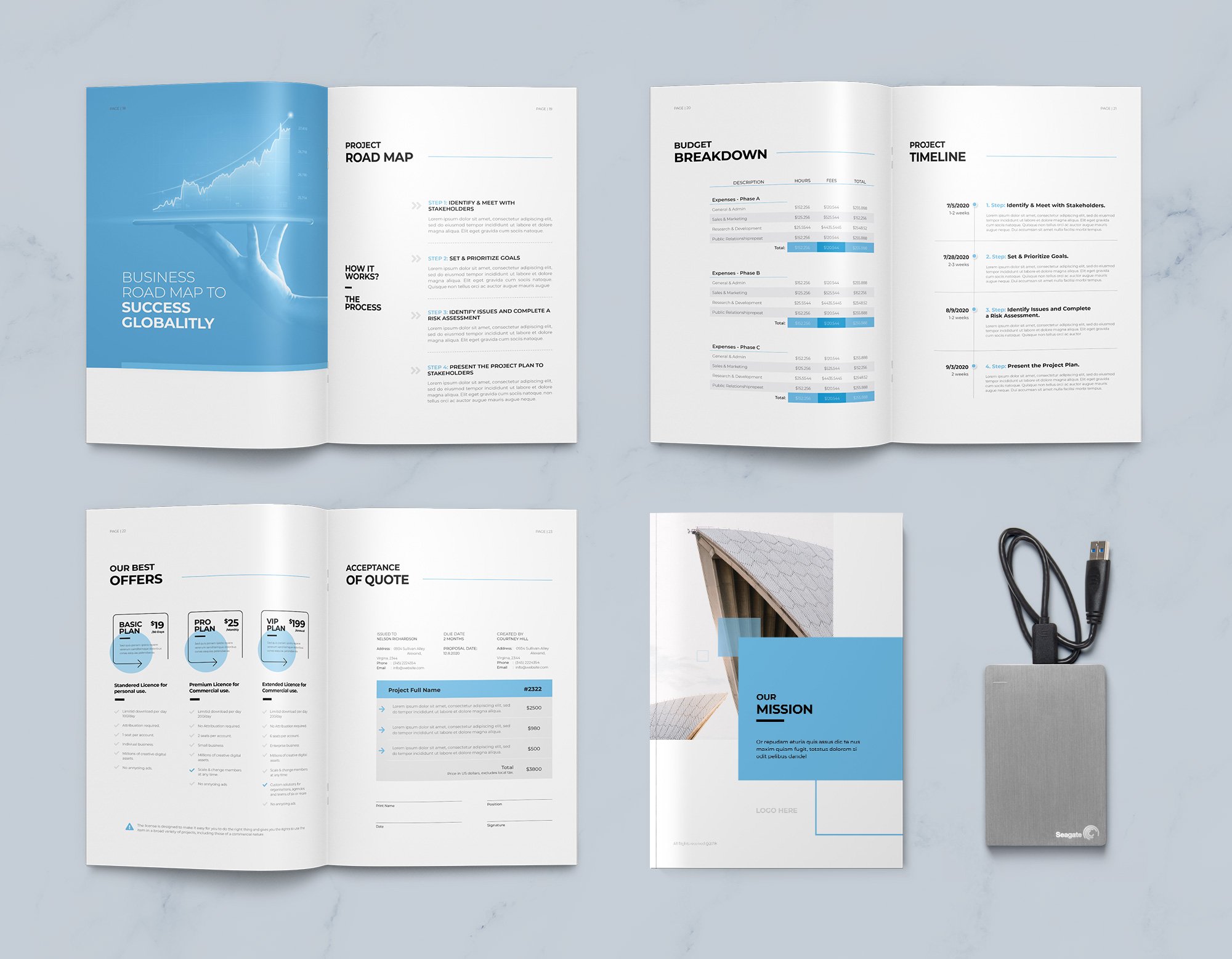 此文档模板结合了有吸引力的设计和业务专业精神,重新设计了您的投标书。其干净的布局和丰富的设计使您可以容纳大量内容,而不会牺牲质量或可读性。另一个很棒的功能是所有内容都是可编辑的,并且只需单击一下即可更改颜色。图像仅用于预览目的,不包含在下载文件中。