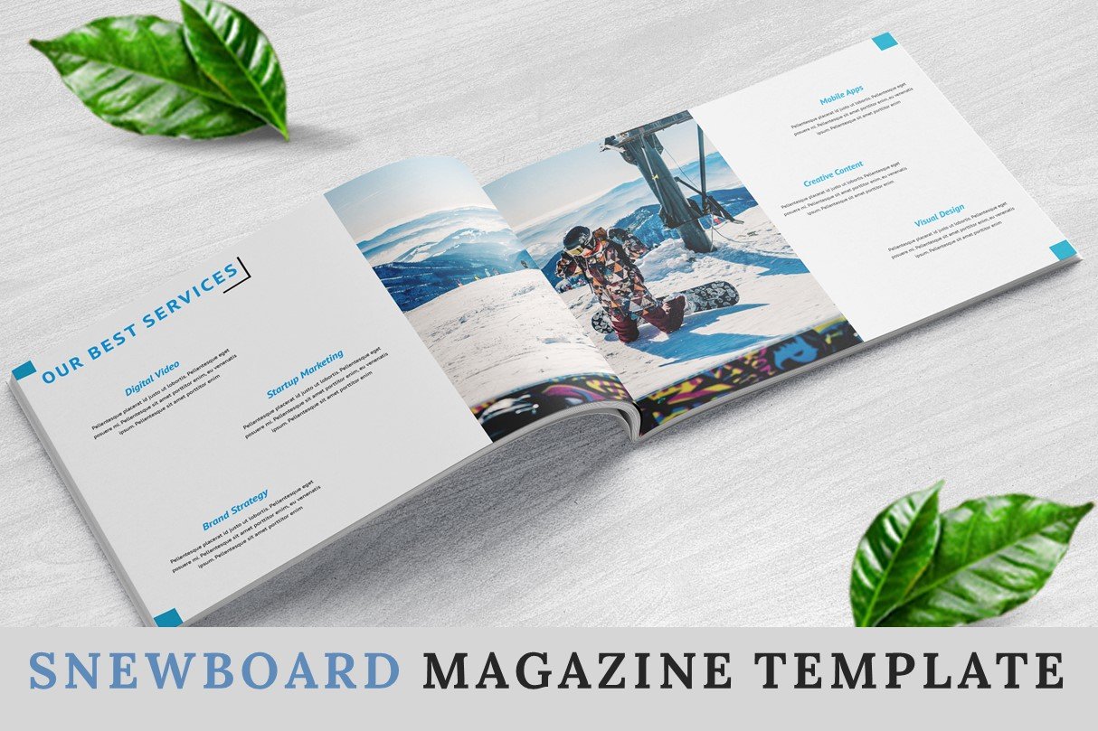 滑雪主题创意杂志手册排版设计模板,现代且专业,排版效果强,可让您的作品集显得专业。它是在Adobe InDesign中创建的,包含16页文档,其中包括两种纸张尺寸。该模板适用于任何项目目的。可以完全自定义以适合您的品牌颜色和公司字体。