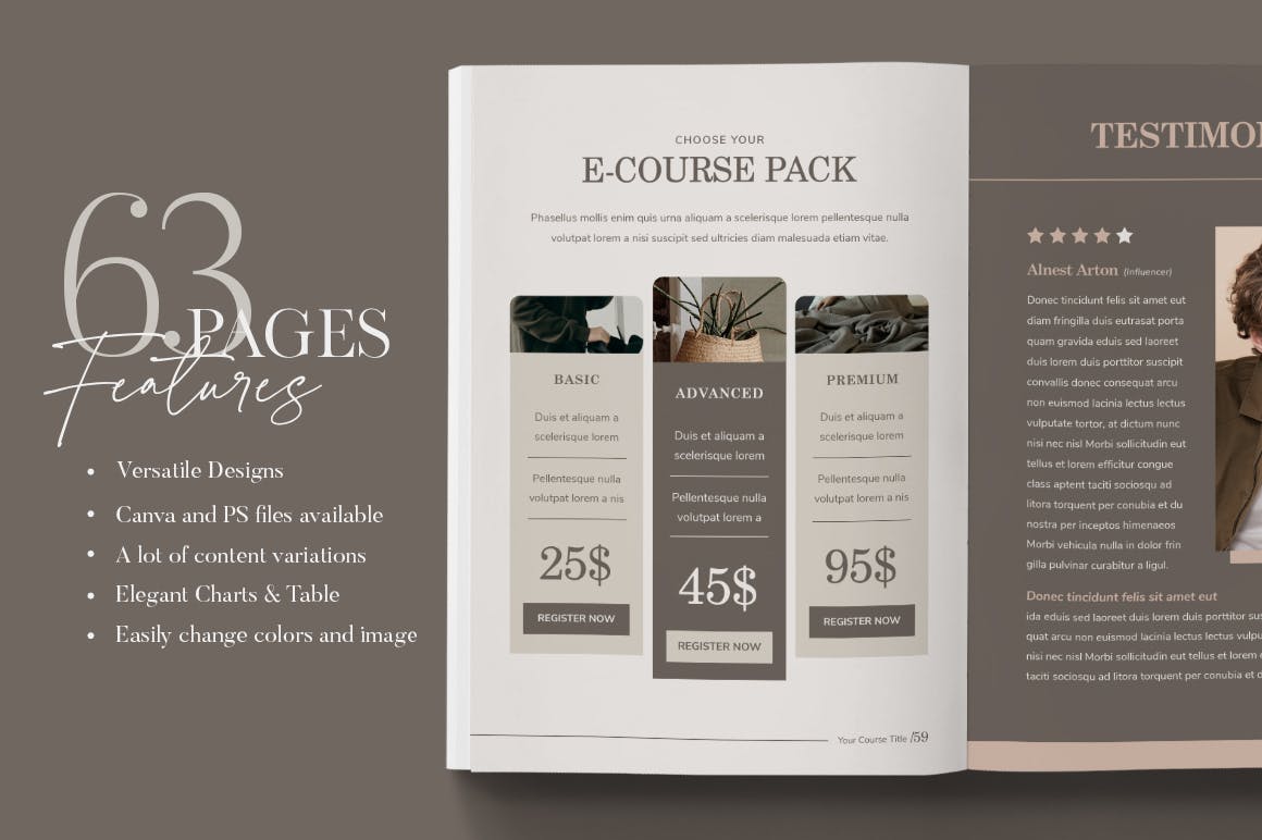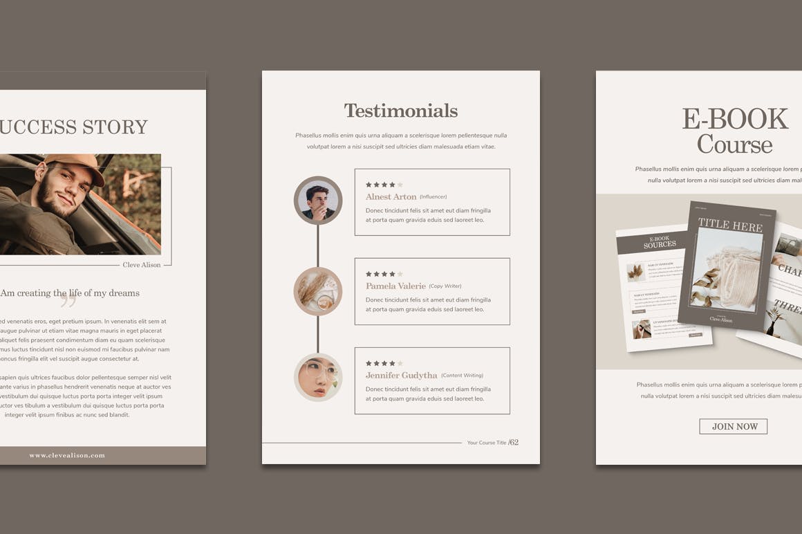 使用此模板创建优雅和简约的工作簿课程。与你的读者接触,最大化你的品牌表现,增加你的电子课程的收入,或者通过你的写作引导你的读者发展他们的业务。通用,通用!