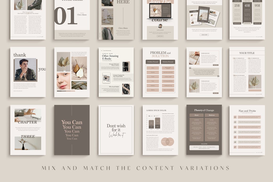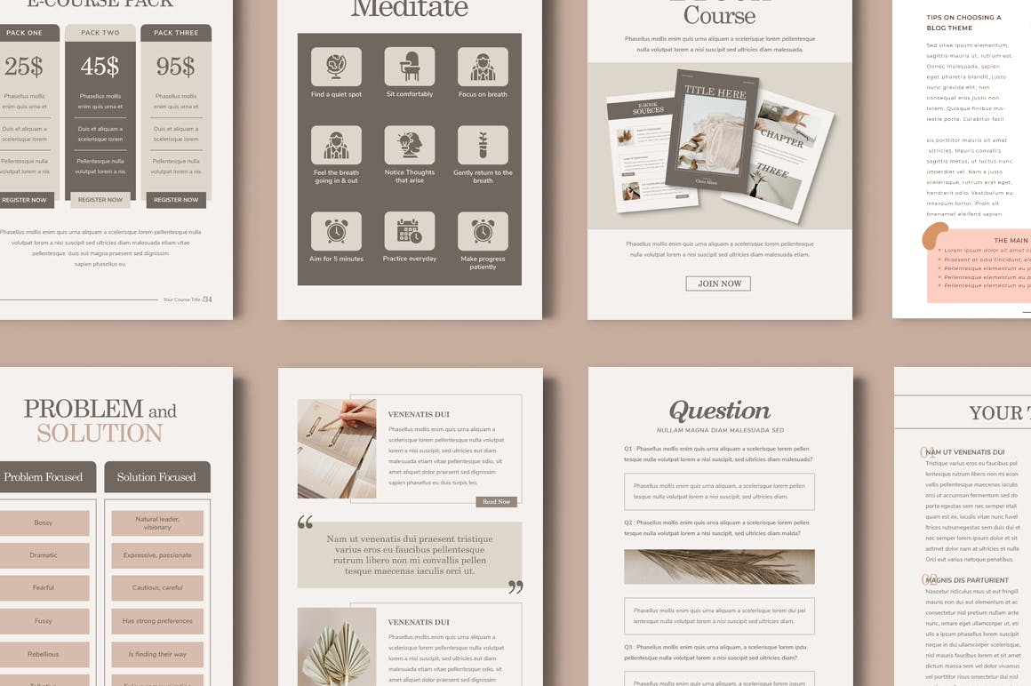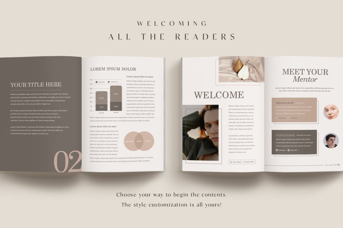 用这个模板创建优雅简约的电子书。与你的读者接触,最大化你的品牌表现,增加你的电子课程的收入,或者通过你的写作引导你的读者发展他们的业务。通用,通用!