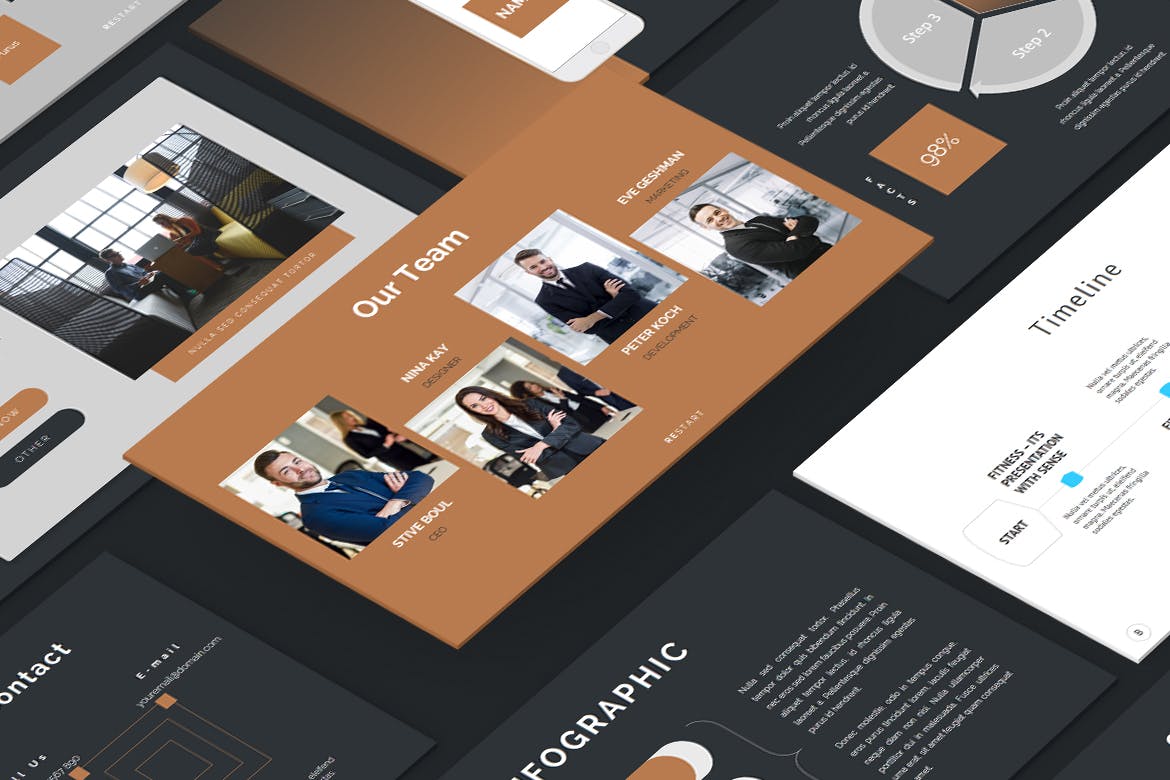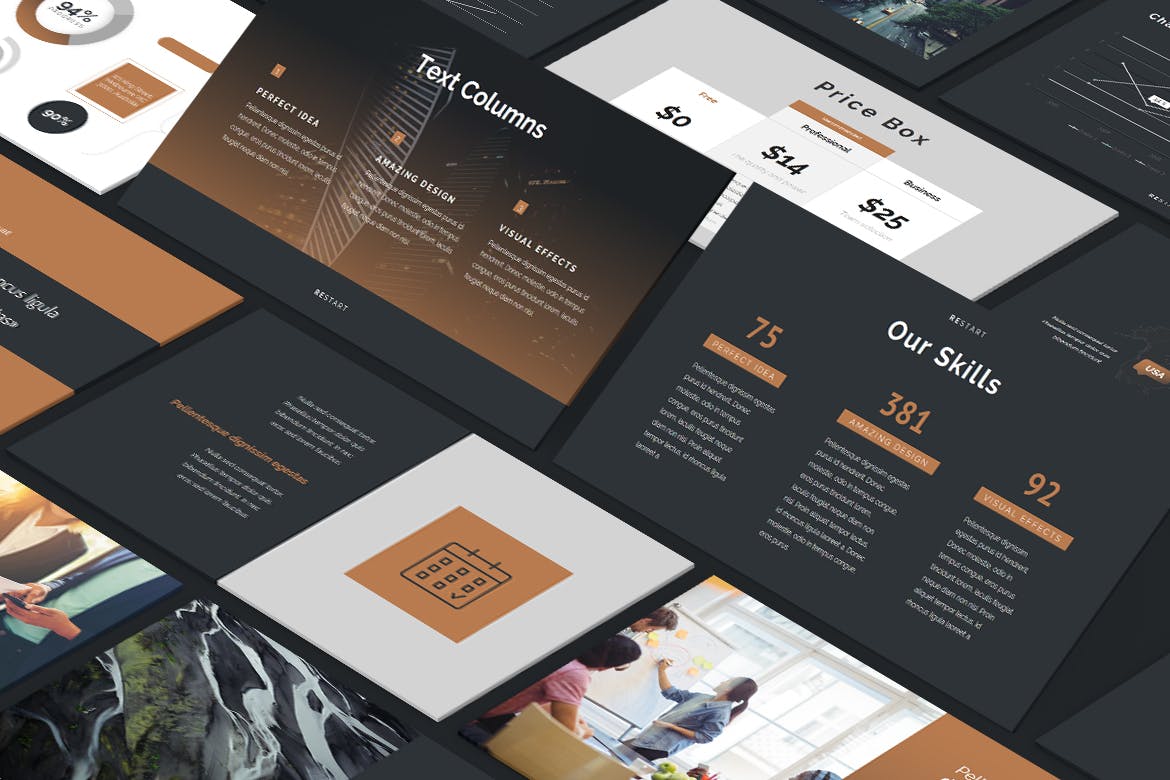 今天分享这款商业机构PPT模板,这个演示模板包含现代、极简、创意、简单和独特的布局。