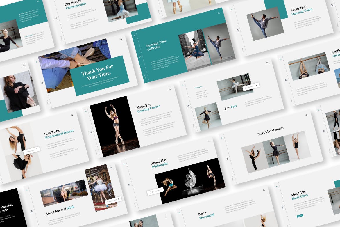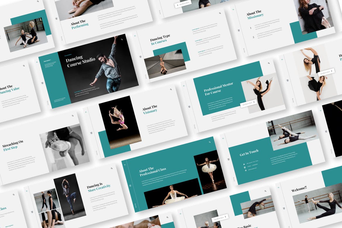 舞蹈课程工作室演示模板,为您的公司简介、营销和多用途业务等准备,极简现代排版设计。