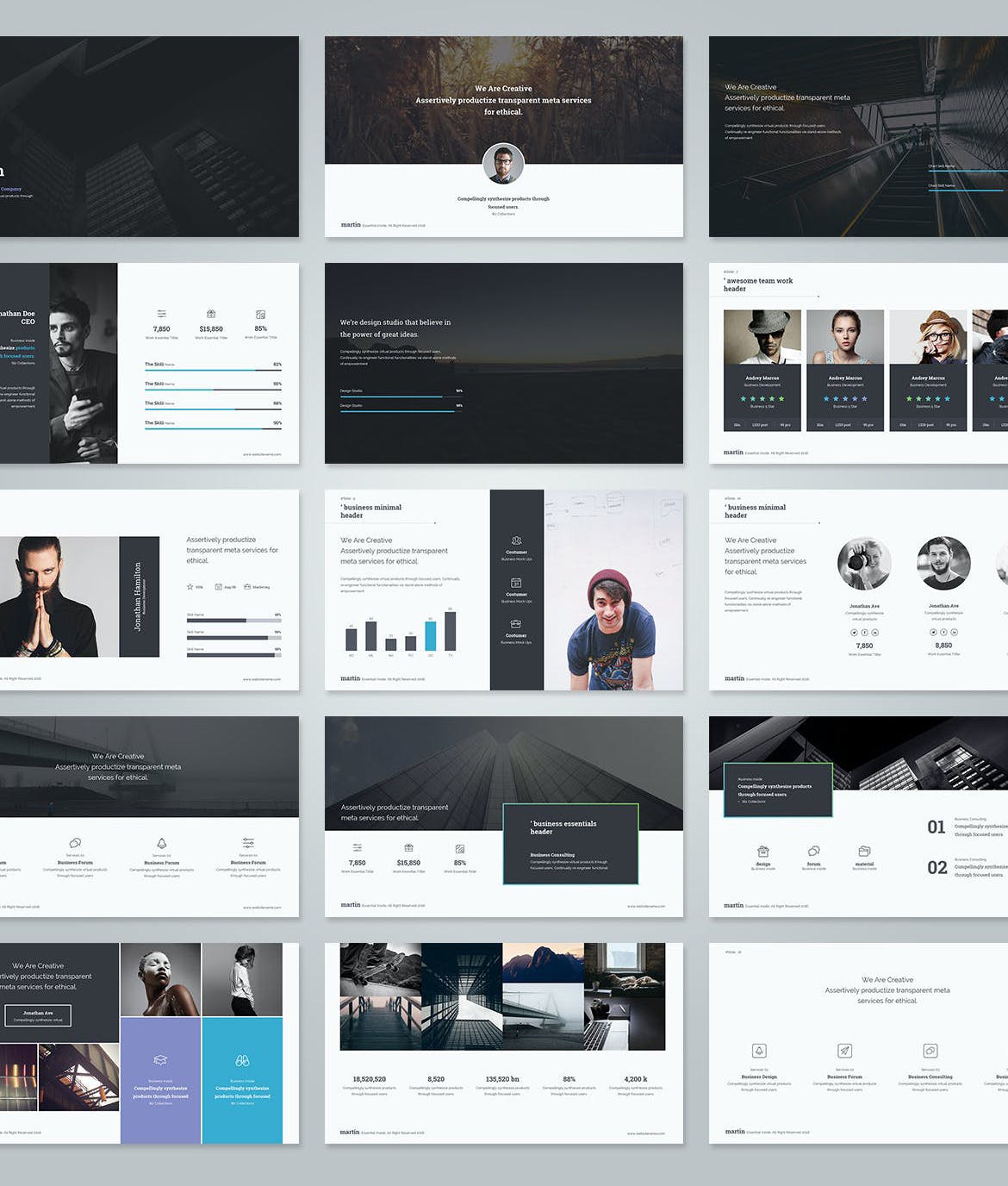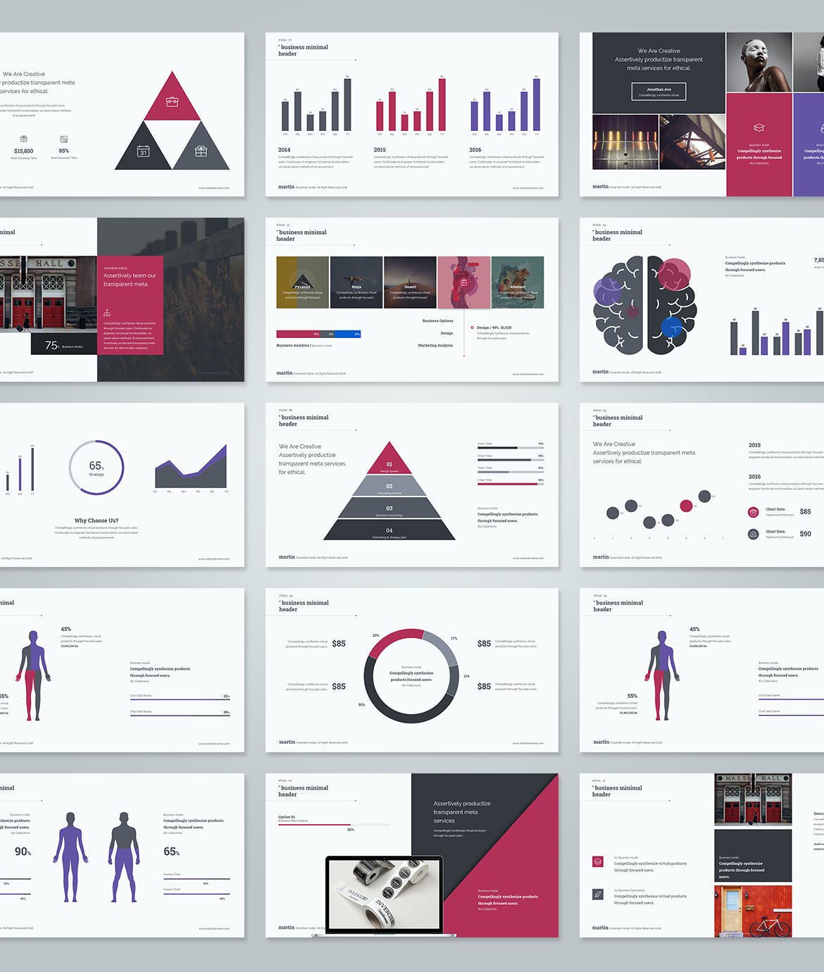 此演示模板包含各种幻灯片,例如服务幻灯片和投资组合幻灯片以及大量信息图表、可编辑矢量图形、图像占位符和包含在包中的 +1000 个矢量图标。