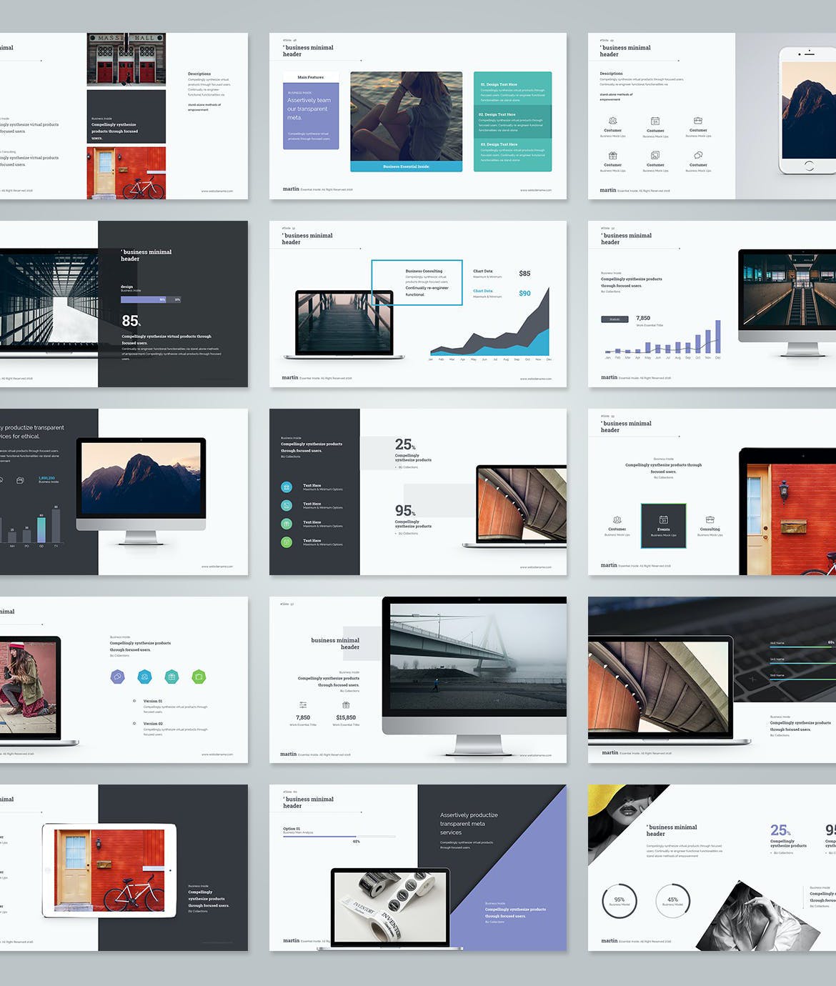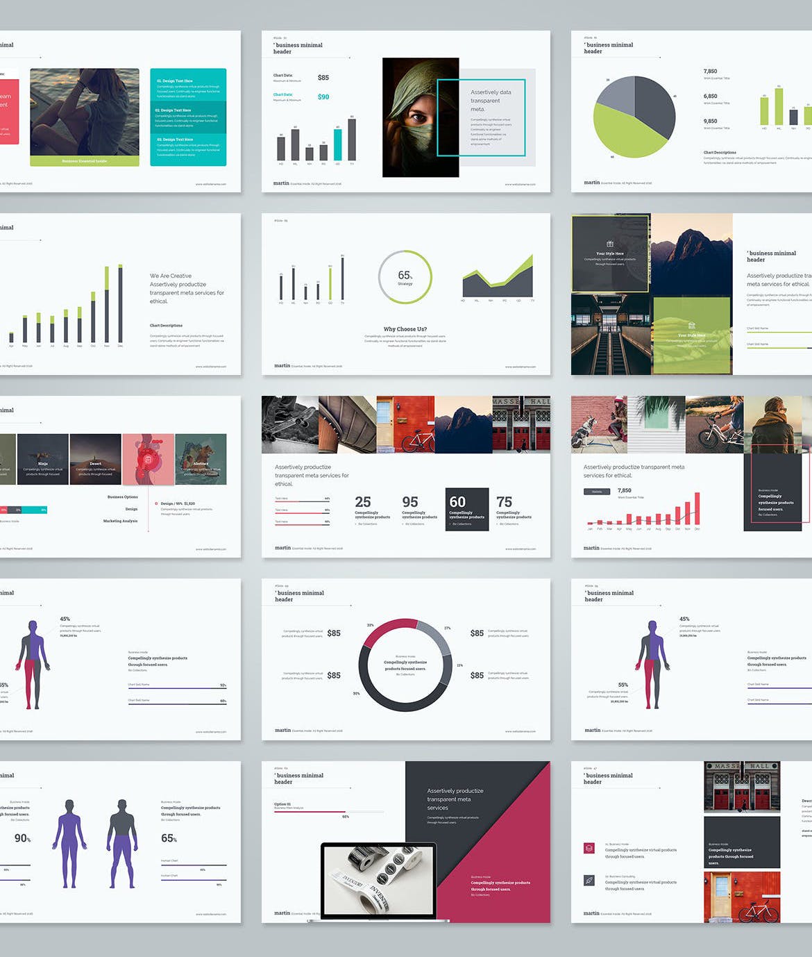 该模板总共提供 120 多张幻灯片,其中包含 3 种不同的配色方案。每张幻灯片也可以根据您的喜好轻松定制。