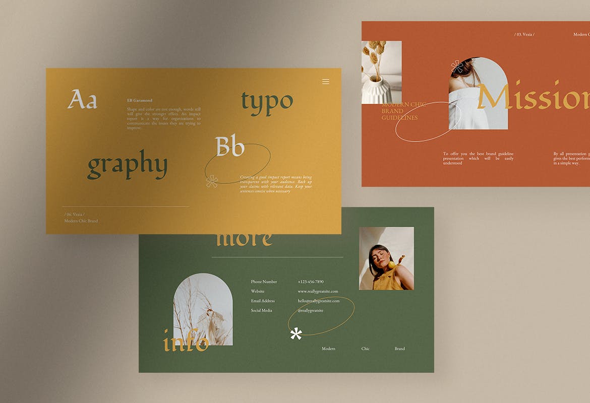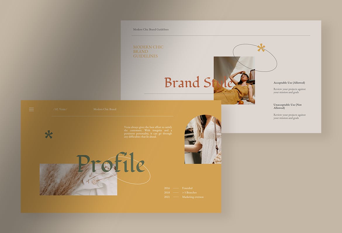 这次老不湿分享的是,时尚高端清新优雅品牌指南powerpoint幻灯片演示模板(pptx),秋日夕阳现代时尚品牌指南演示模板,为您提供10种独特的模板设计,提供PPT和PPTX格式文件。您可以使用 Microsoft PowerPoint 或您设备上的任何其他兼容应用程序编辑模板上的文本、图像和颜色,使其更符合您的偏好或需求。