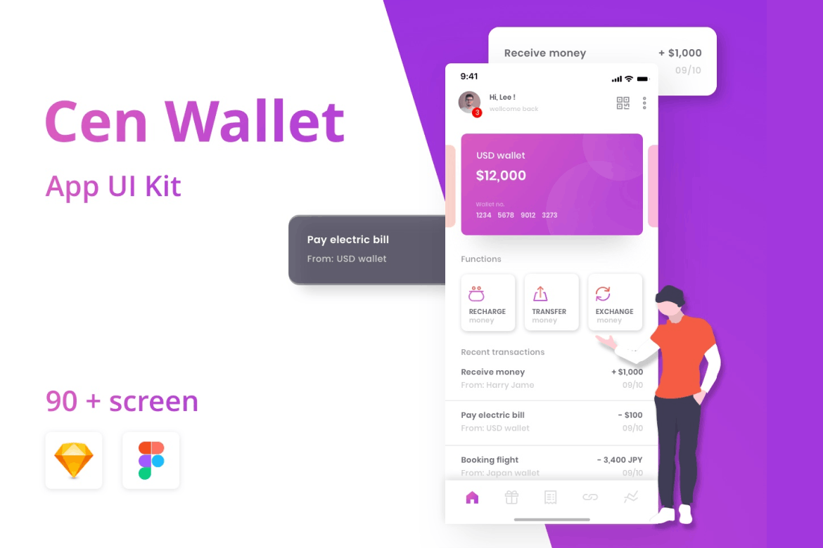 Cen Wallet是一款现代、干净且非常详细的iOS用户界面套件。您可以使用此应用程序模板进行资金交易、管理帐户加密钱包和预算计划。我们为您的移动应用程序设计了90多个漂亮独特的屏幕。所有符号和对象都基于矢量,易于编辑。我们不仅为草图文件创建版本,也为Figma文件创建版本,所以它很容易编辑。我们派了很多人去研究UX for Coin、交易和管理你的钱包应用程序,这样你就可以为自己或你的企业获取和使用。