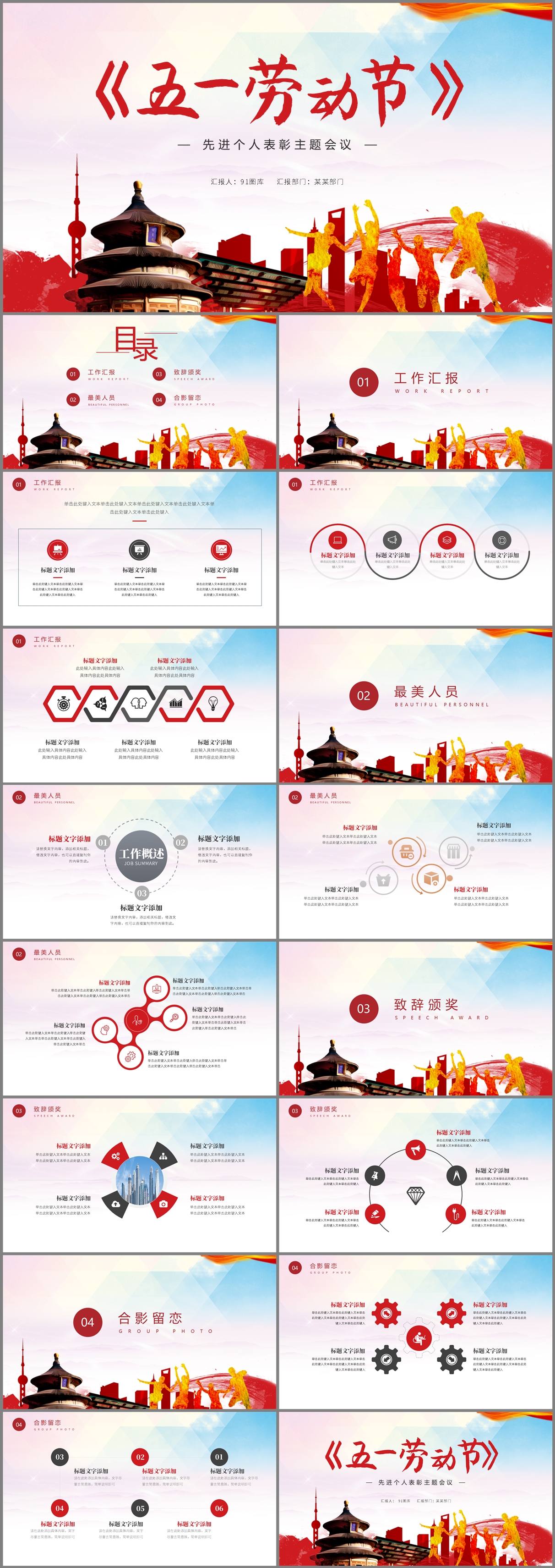 91图库,免费红色党政风五一劳动节PPT模板下载 声明:所有作品均是用户自行上传分享,仅供网友学习交流,请勿作它用。若您的权益被侵害,请及时发邮件联系我们(v918pic@foxmail.com)。在您发送邮件后,工作人员会尽快处理,由于涉及内容不同,所需周期也不同,请您耐心等待。ppt模板五一五一劳动节免费PPT党政风劳动节我爱劳动红色节日PPT 三极字库孔剑锋 海报 链接