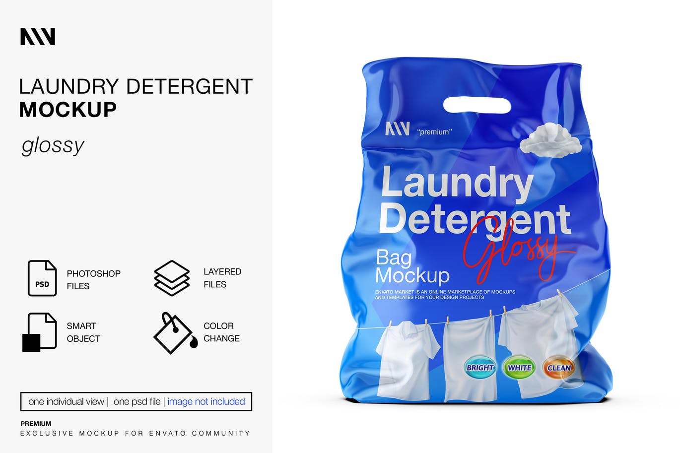 用这款洗衣粉产品包装样机样机展示您的设计。该文件包括颜色对象和背景的单独图层。标签的智能层有助于应用您的设计。优质且易于使用。