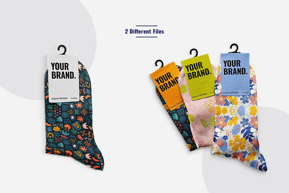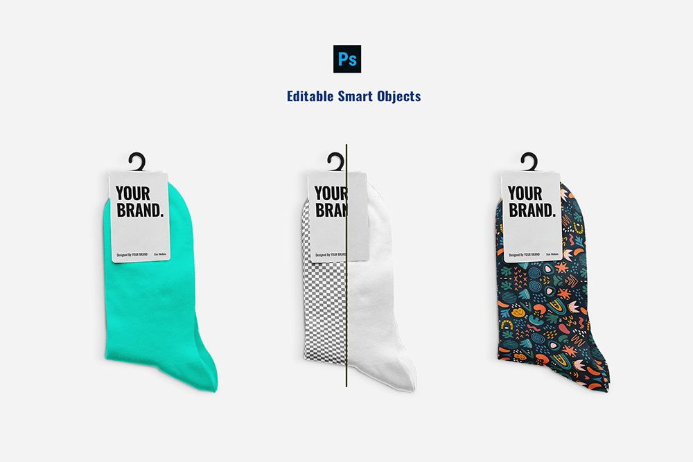 一双休闲棉袜的绝佳样机。该袜子样机包括一对袜子的单个顶视图以及一组三双袜子。逼真且完全可编辑。Photoshop CC 及更高版本与高筒袜样机兼容。图像编辑过程很简单,不需要大量的 Photoshop 知识。休闲袜子样机易于定制,可用于任何背景。