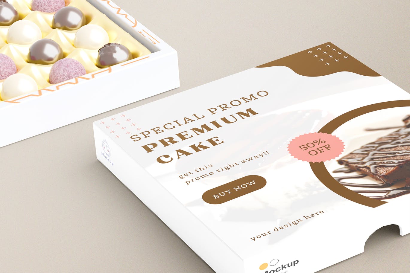 蛋糕包装模型混合了奢华和现代的外观,让你的配色方案,无论是浅色还是深色,都闪闪发光。通过轻松地将图形拖放到图层中,并与世界分享您的品牌和产品设计,使用智能对象插入图形。
