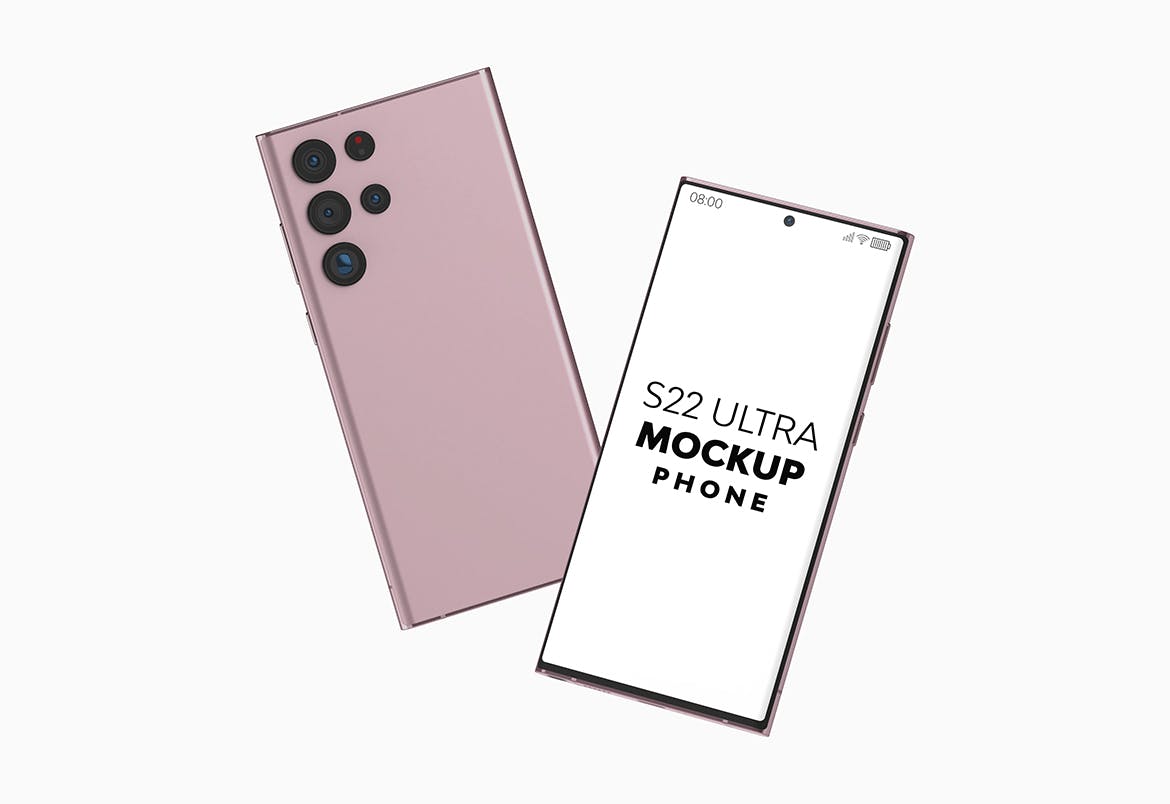 展示你的**应用程序设计**、**游戏设计**、**用户界面/用户体验设计**、**Instagram帖子和故事**以及**模板**,包括这套**12款三星S22 Ultra手机模型!**使用Photoshop智能对象,只需单击一下即可放置您的设计。就这么简单!