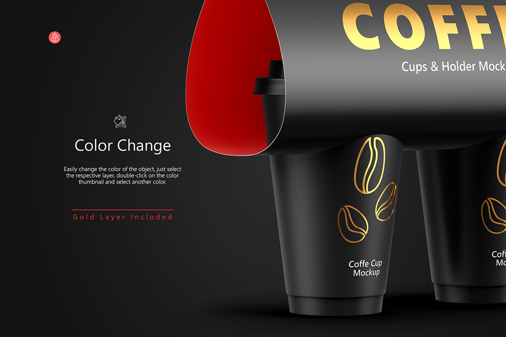 使用这些外卖咖啡杯样机- 半侧视图,可视化您的设计理念 。这些咖啡杯架样机包含特殊图层和智能对象。金色层将帮助您突出所需的设计元素或文本。