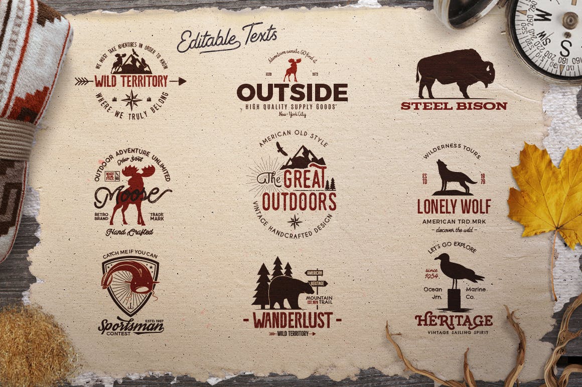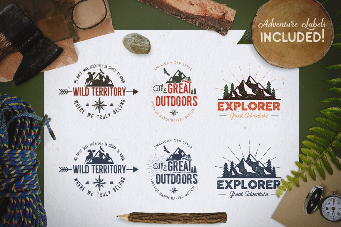 这次分享的是,经典复古冒险户外拓展品牌logo设计模板库[Ai],户外活动图形(徽标,带有可编辑文本的徽章设计,海报,T恤设计,图标,符号,元素等等) !)。