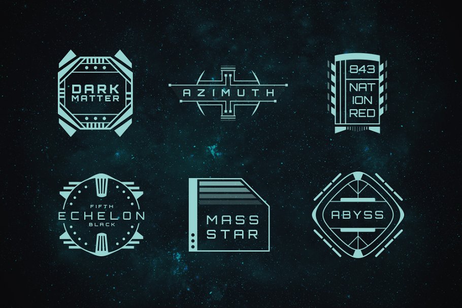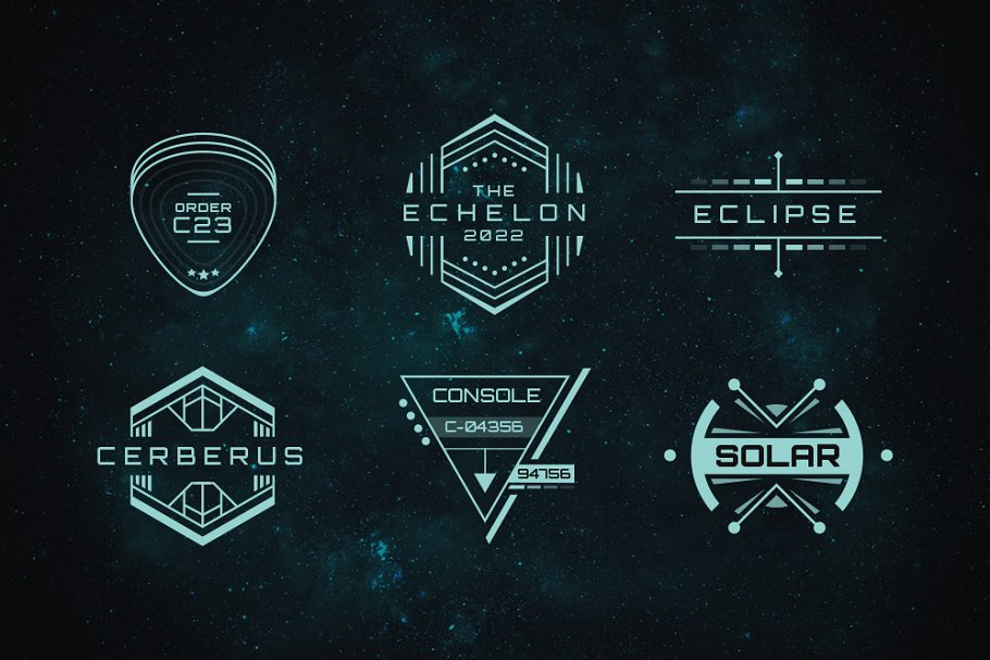 一套18个未来主义徽章,4种不同的配色方案。 还包括高分辨率的空间背景。