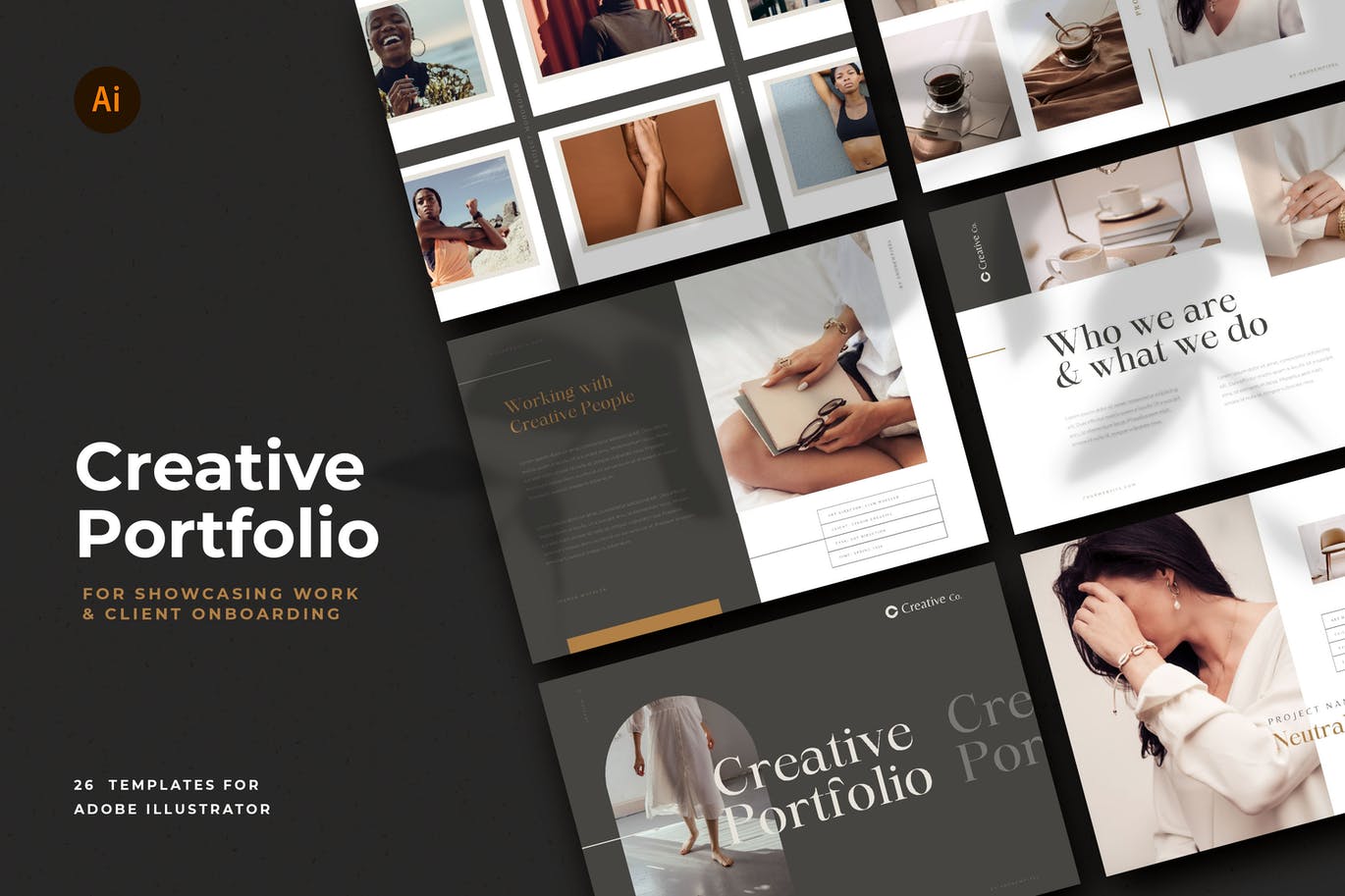 这次分享的是,26页时尚高端简约服装服饰品牌手册画册宣传册杂志设计模板-AI,EPS,针对设计师,影响者和创意企业家的创意作品集模板。模板包括26种不同的布局,以优雅,专业的方式宣传您的作品。每个模板都经过仔细考虑,并有意使用。使用它们来展示您的最佳工作,并使客户的入职过程更加顺畅!