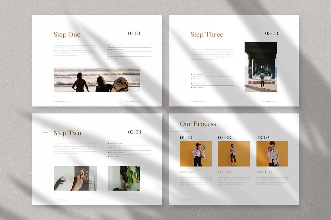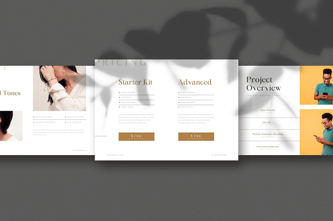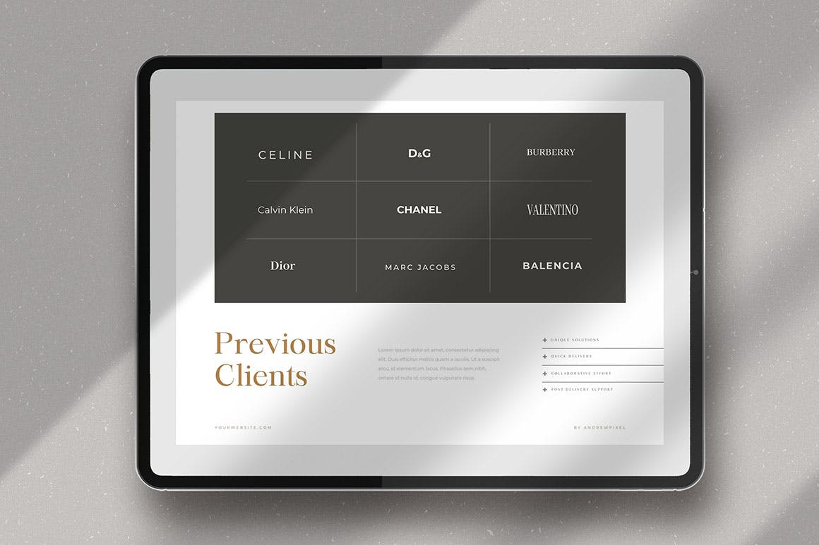 使用这些产品组合模板可以为您的客户提供概述,例如进行案例研究,展示以前的成功项目,确定价格以及对未来合作的期望