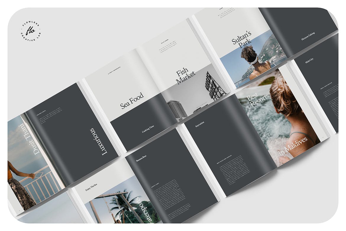 这次分享的是,24页时尚人像摄影品牌手册画册宣传册杂志设计模板,24个自定义页面文档。