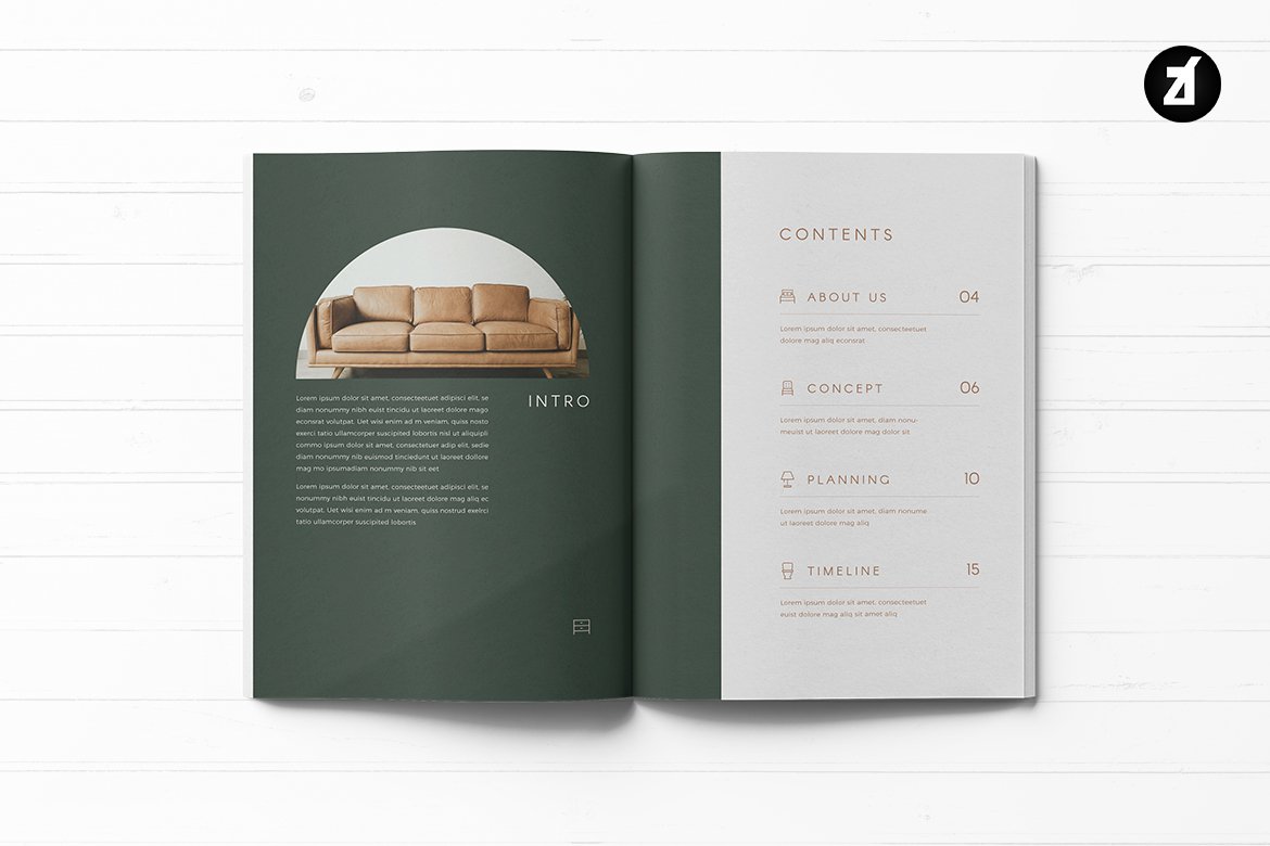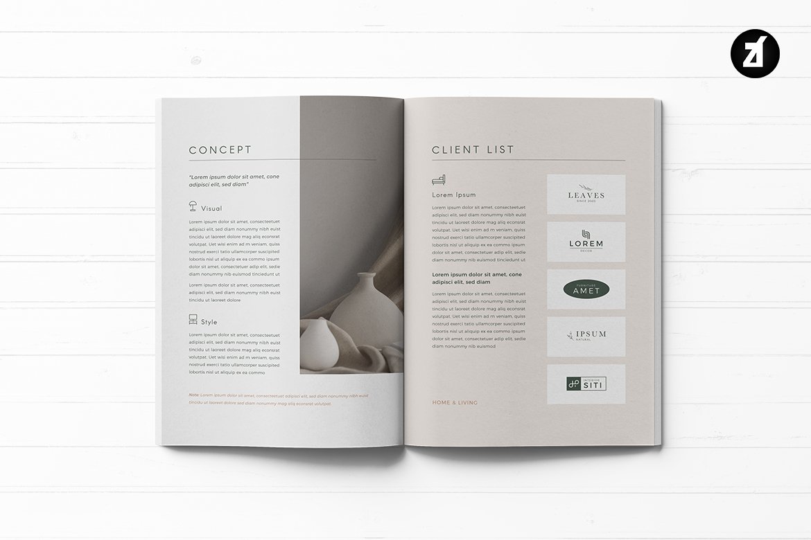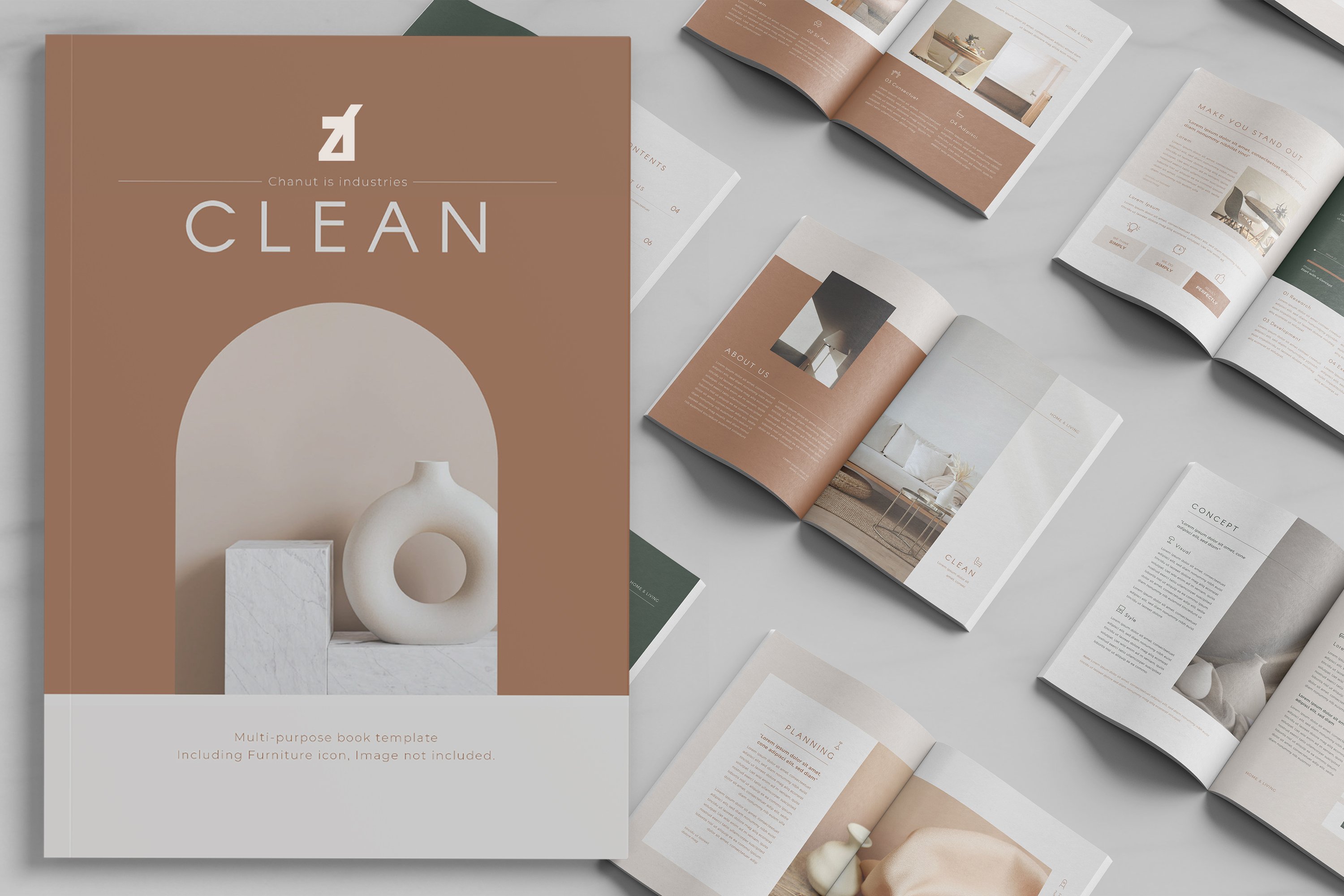 此简约多用途的产品目录杂志画册设计模板可用于各种类型的社论中,例如:杂志,提案,目录,作品集等。