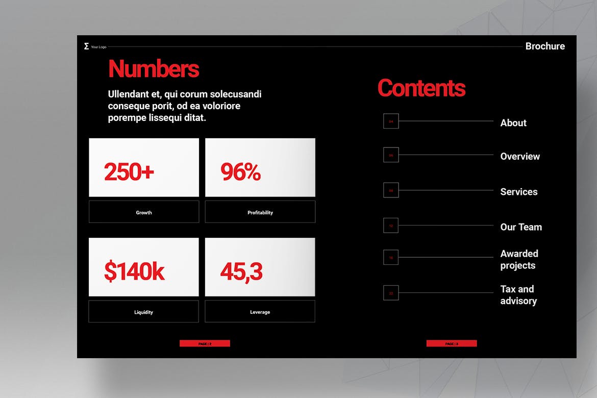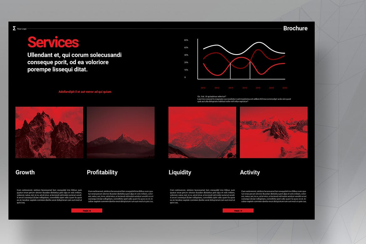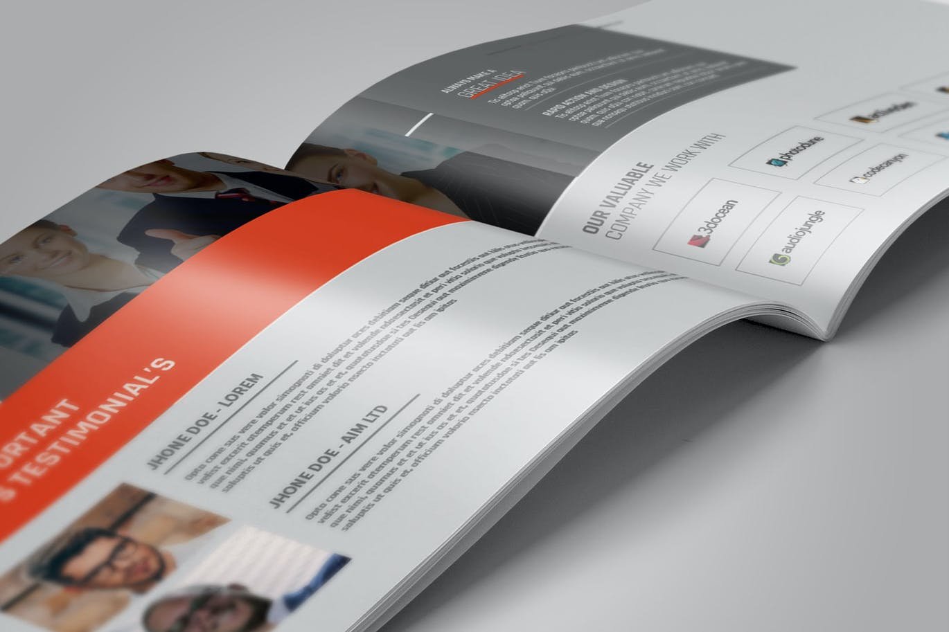 公司简介宣传册模板是24页,两种不同尺寸:A4和美国信纸。所有单元和文本都经过分层以轻松自定义。