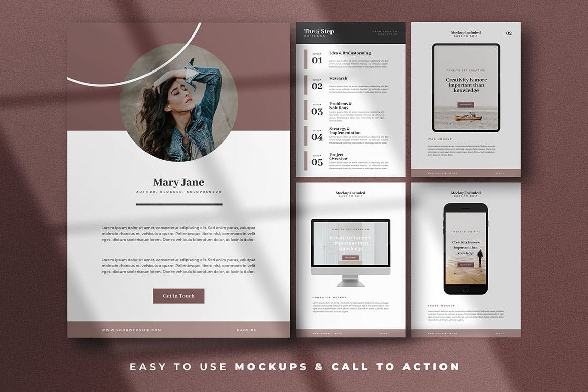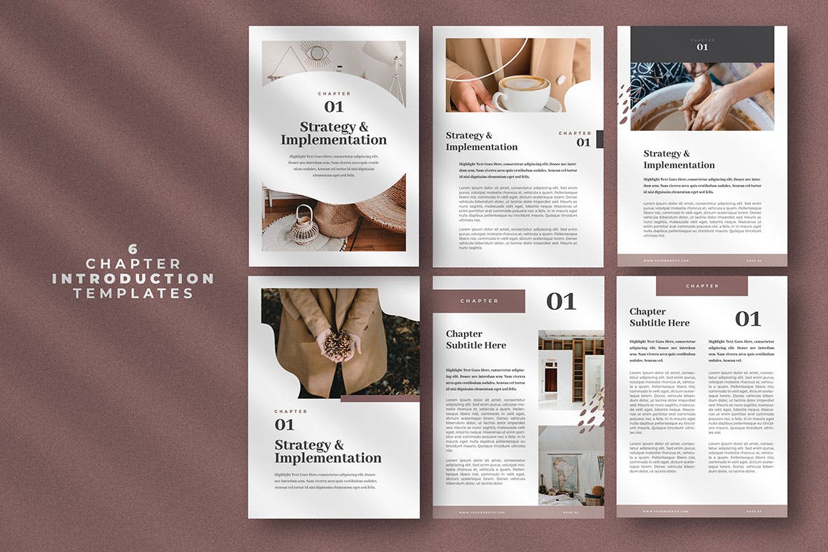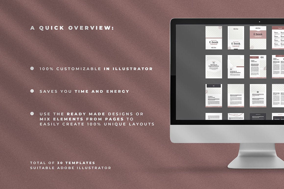 **为Adobe Illustrator创建。**您可以简单地编辑每个布局,文本,颜色和图像来创建遵循您的品牌指南的电子书。您可以复制所需的页面,也可以删除不需要的页面以创建无限的变体。