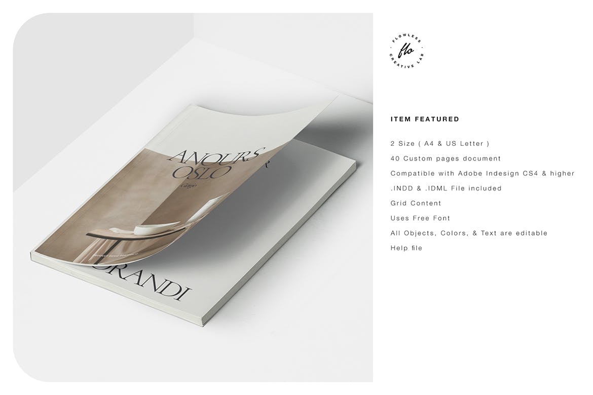 这次分享的是,40页A4简约时尚高端品牌手册画册宣传册杂志设计模板,40个自定义页面文档,2尺寸(A4尺寸和美国信纸尺寸)。