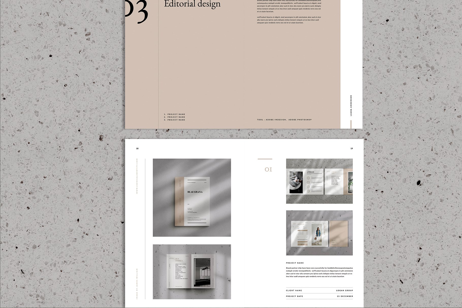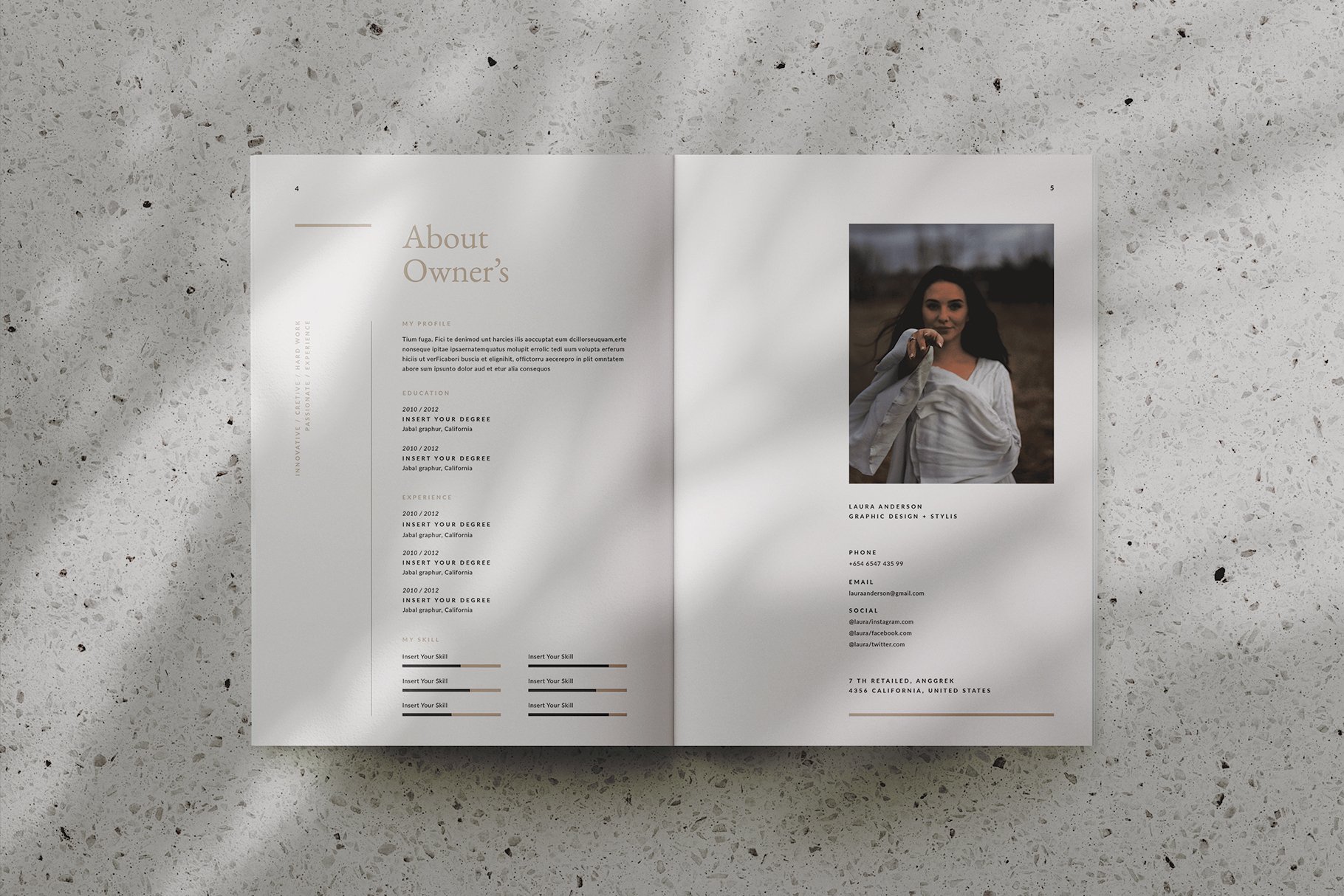 这是一个简约专业的图形设计师作品集模板,适用于从事产品/图形设计作品集,产品目录和基于代理的项目的设计师。它是在Adobe InDesign中创建的,包含52页文档和2种纸张尺寸,包括美国信纸和国际A4。
