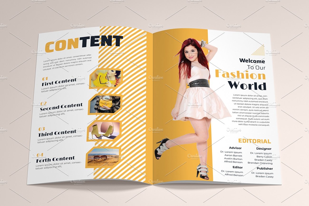 这是专业的时尚杂志宣传册模板。您可以通过此创意时尚杂志宣传册模板来增强你的业务。