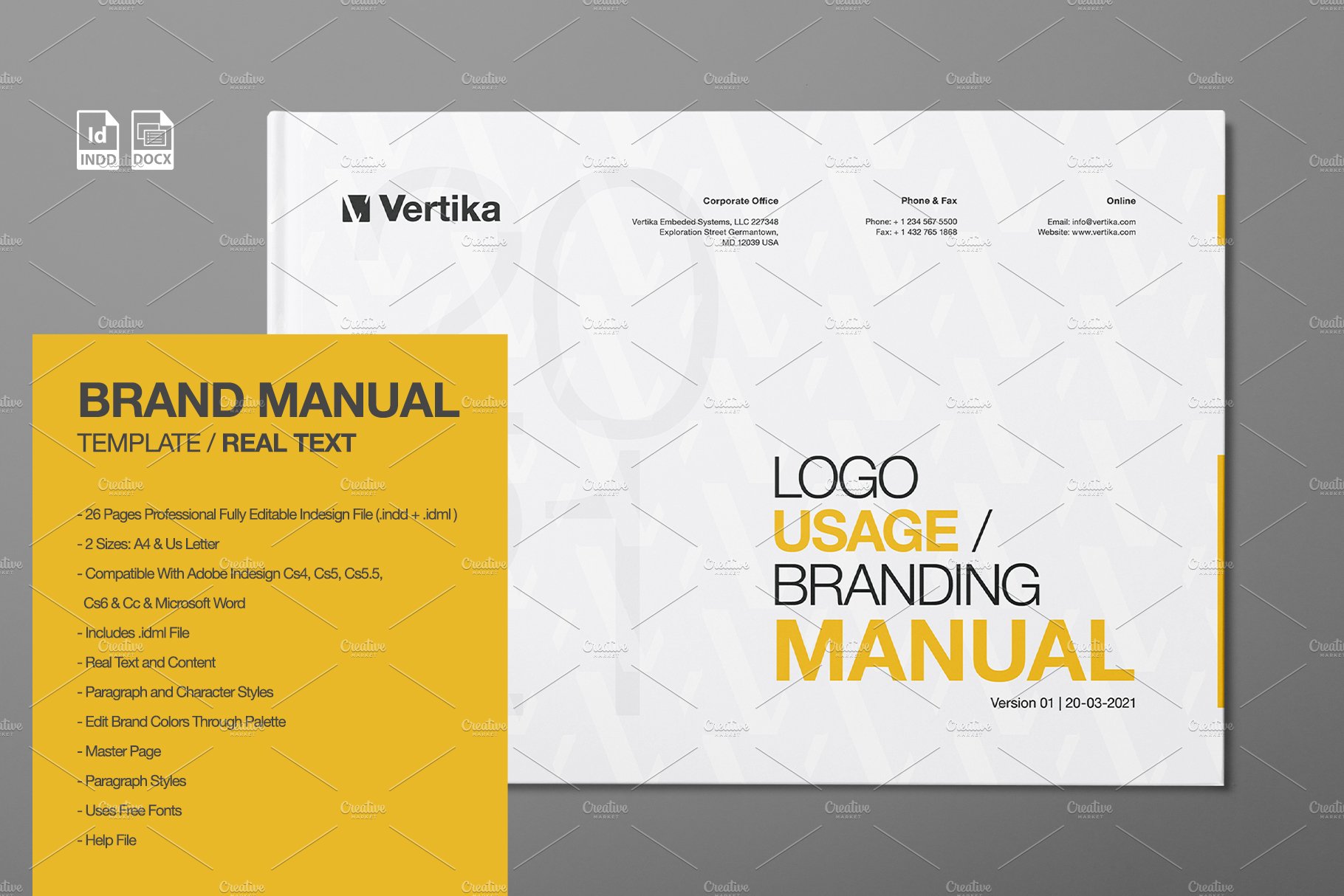 适用于您的企业的专业品牌手册手册模板,在Adobe Indesign中创建。