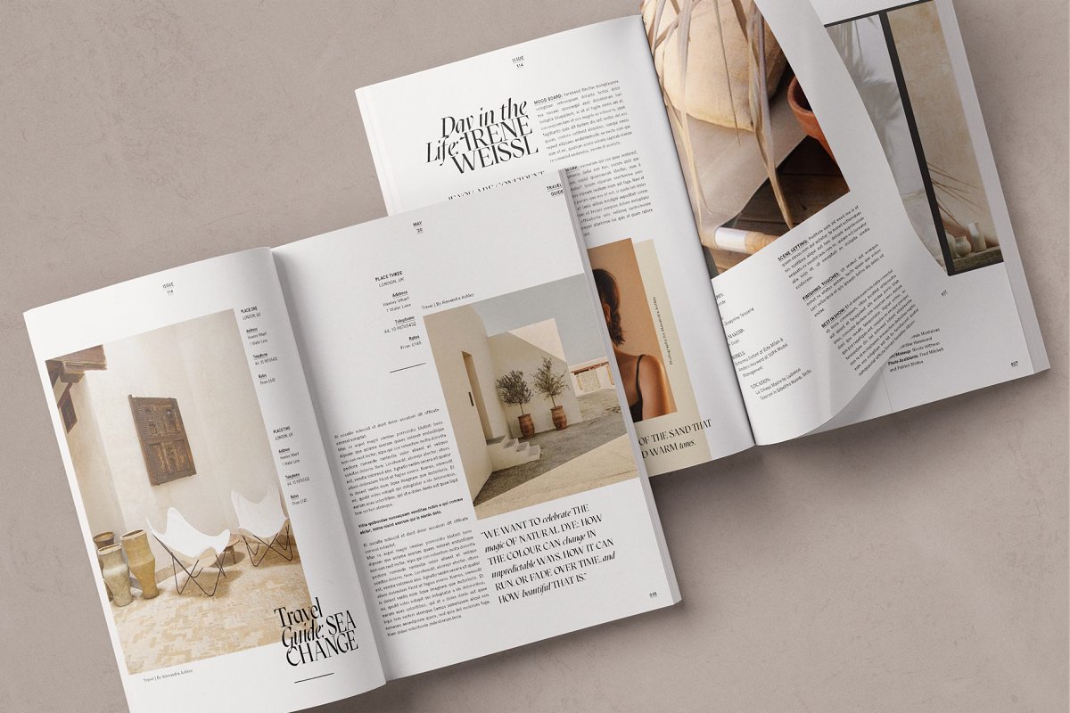 这是一本充满爱心的生活方式杂志,旨在满足最苛刻的客户。该模板包含使用Adobe InDesign制作的30个页面,可以完全编辑。它包括不同的部分,内容涉及样式、设计、时尚、旅行、食谱、访谈、文化、艺术等出版具有设计工作室品质的杂志所需的一切。