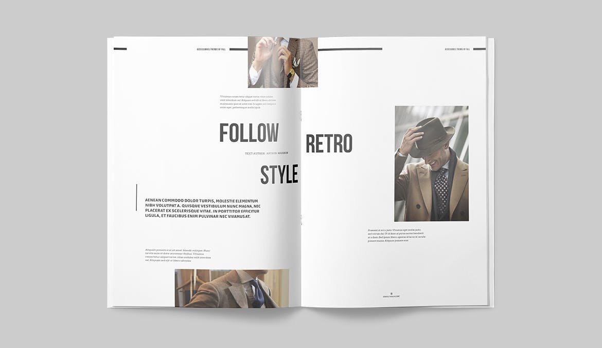 这次分享的是,25页简约服装服饰设计杂志品牌手册画册宣传册设计模板,专业,干净的InDesign杂志模板。包括25页的文章,访谈,画廊和展示柜。所有文本均可编辑,并带有图像占位符。文件已准备好打印并带有出血。所有文本均设置有免费字体,并提供下载链接。