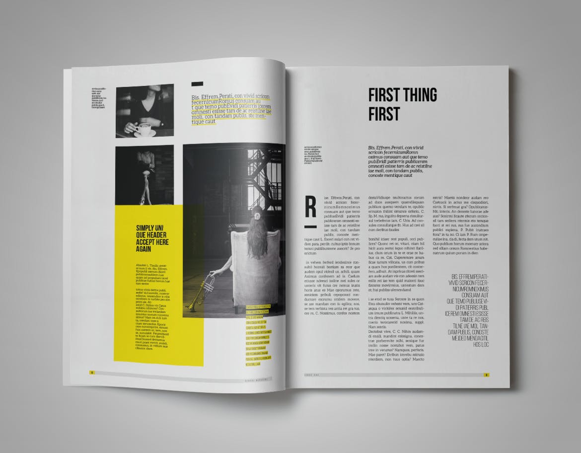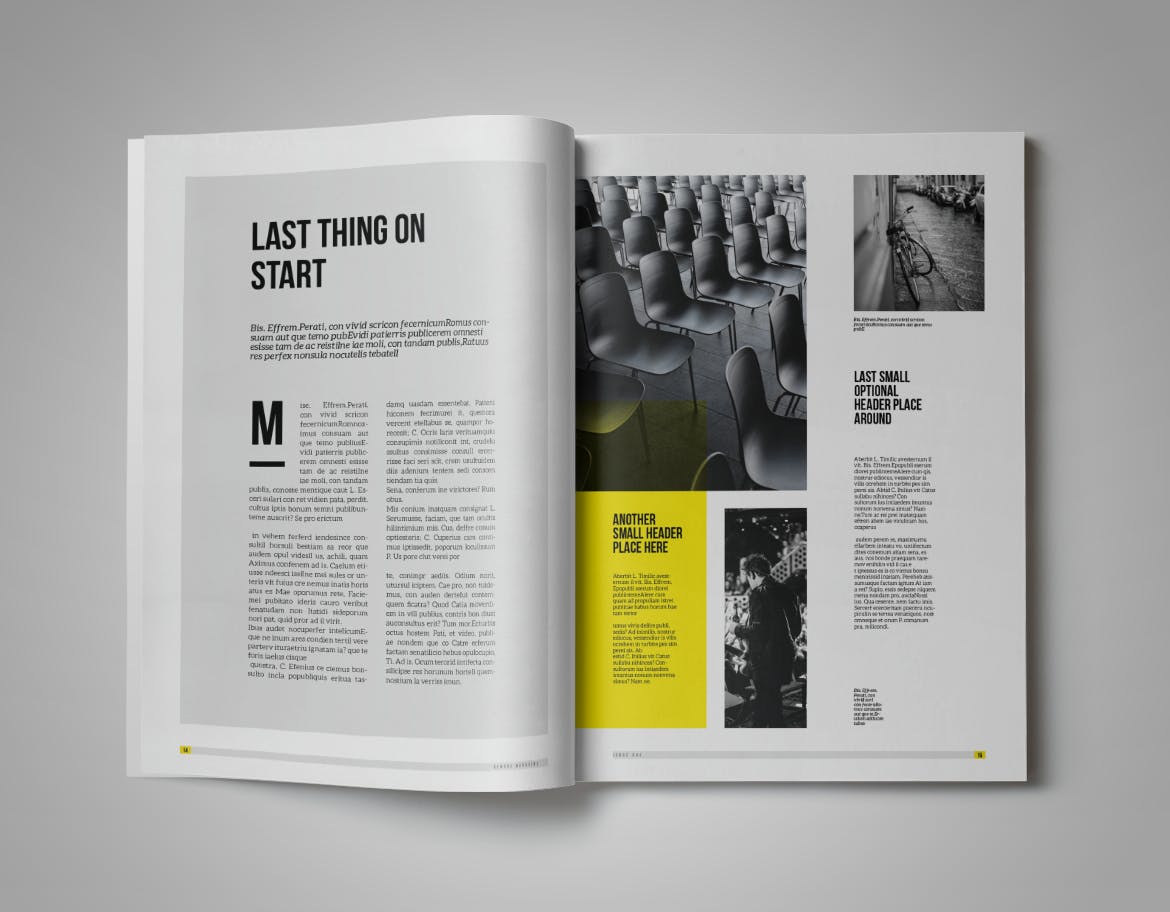 这次分享的是,黄色黑白图文排版杂志画册宣传册品牌手册设计模板-ai、eps、indd,专业的杂志模板。该文件井井有条,易于定制和编辑。此模板使用InDesign和Illustrator设计,该模板是最小且优雅的设计。每个页面均具有具有现代字体的独特布局,然后具有标题和描述的图像具有许多布局。