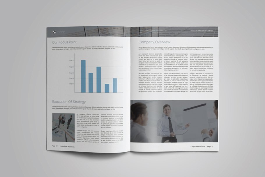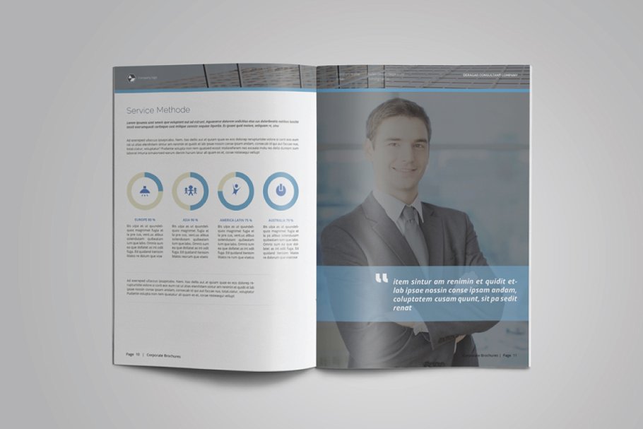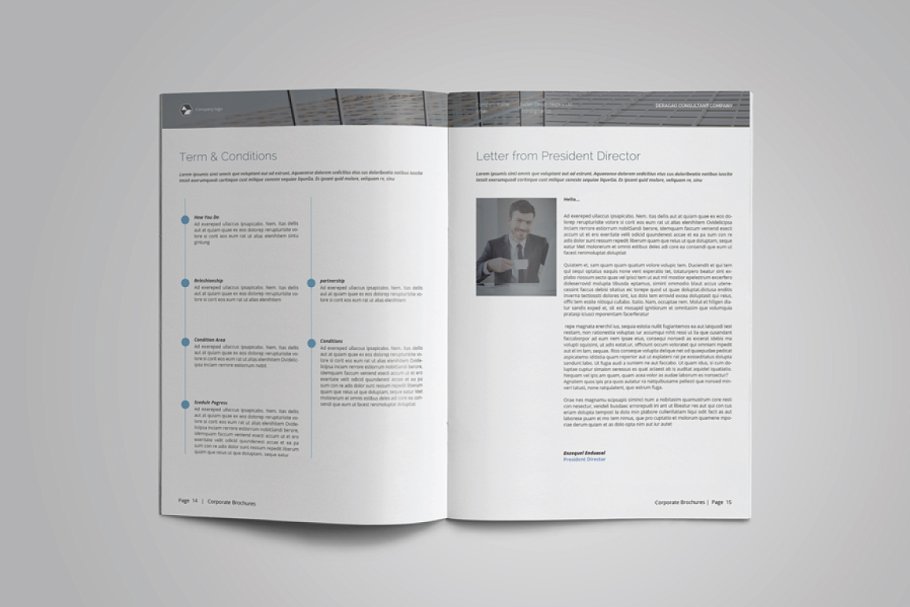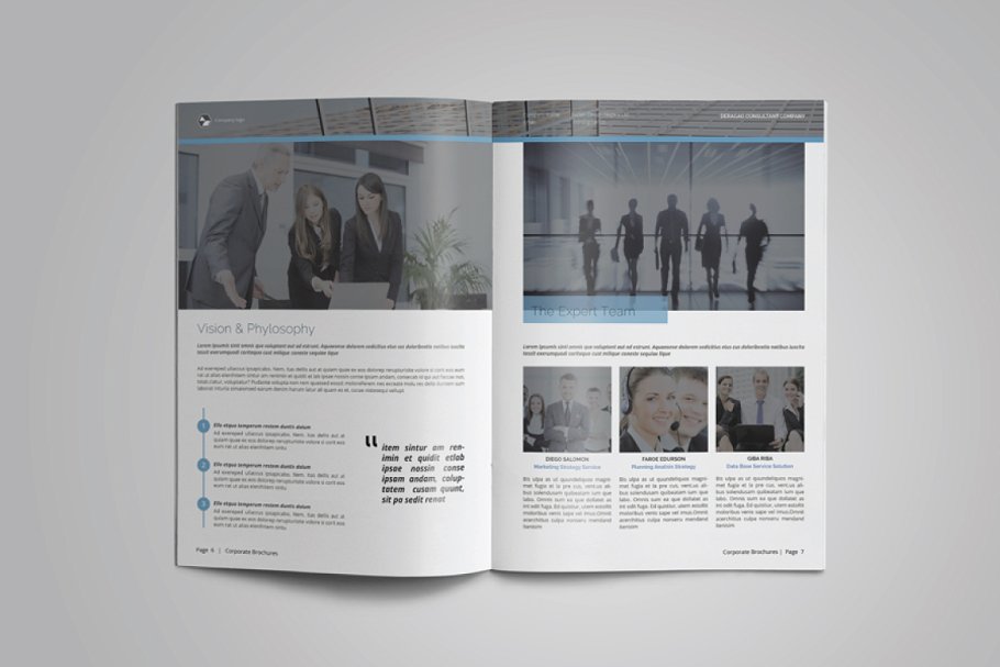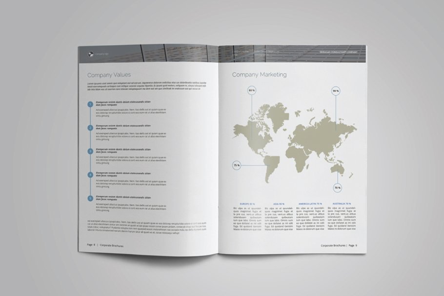 这是一个现代和强大的公司简介手册/目录或作品集模板。该模板非常适合需要典雅和专业宣传手册的任何公司、组织或其他机构。
