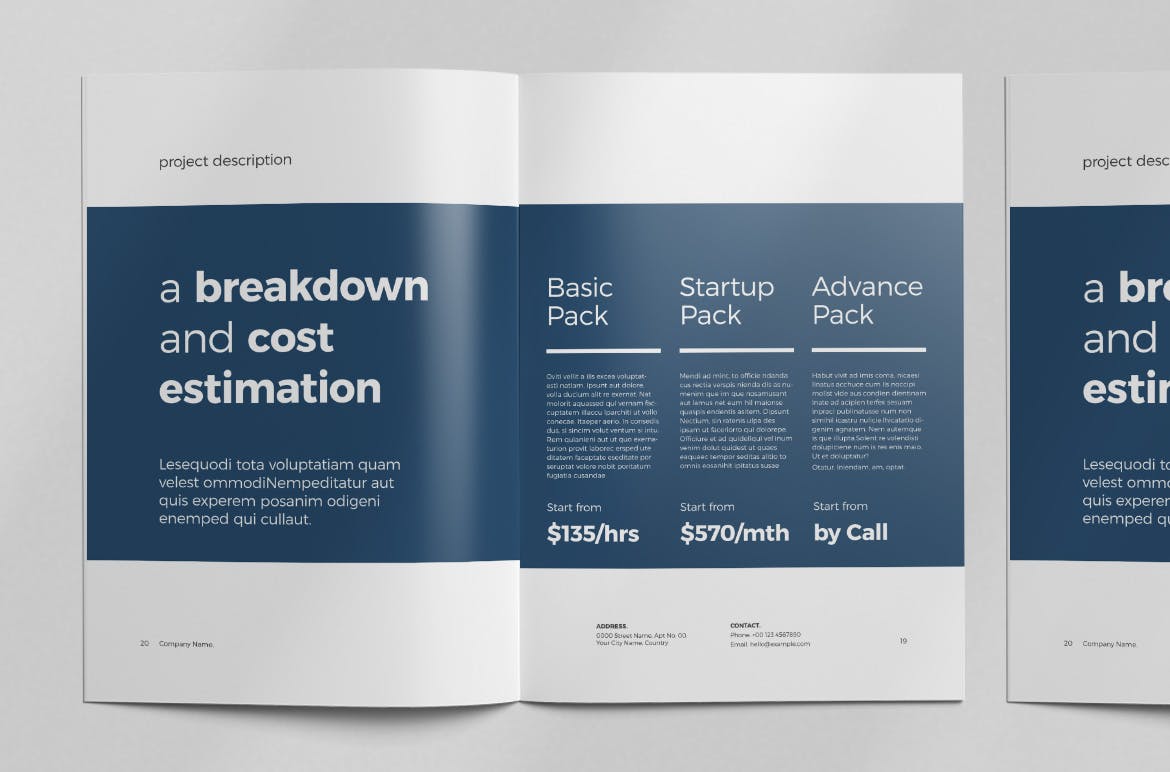 这次分享的是,A4商务风网站设计师项目策划品牌手册画册宣传册杂志设计模板,针对创意企业,网站开发人员,网站设计师,应用程序开发人员等的清晰专业项目建议模板。它使用Adobe InDesign创建,有两种纸张尺寸,包括US Letter和International A4。