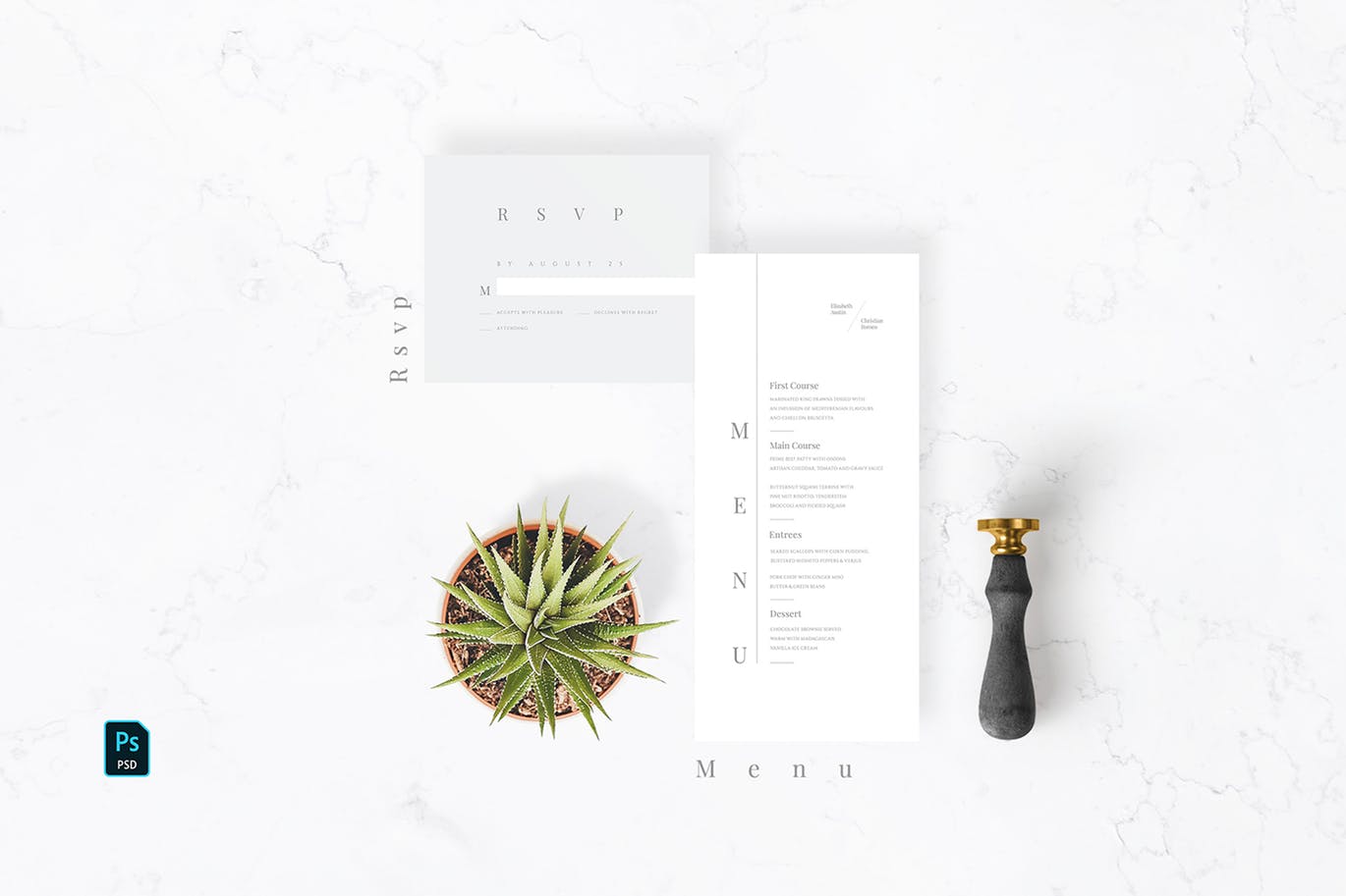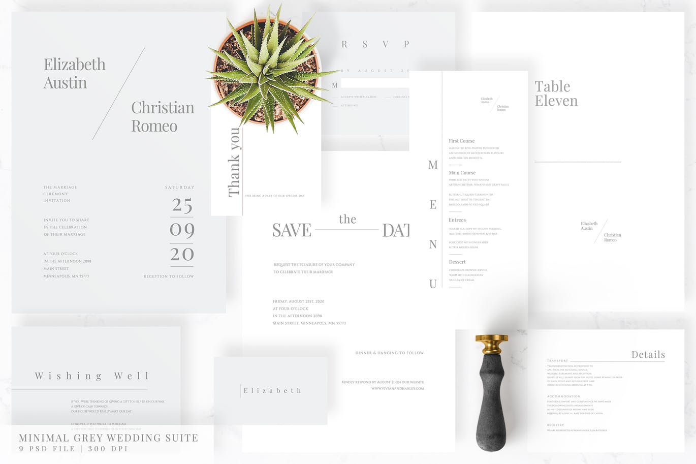 这次老不湿分享的是,高品质的时尚高端简约婚礼VI设计模板(psd),最小的灰色婚礼套件包括9个PSD文件项目: